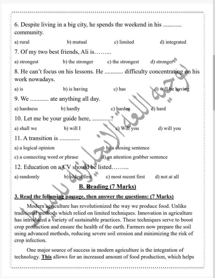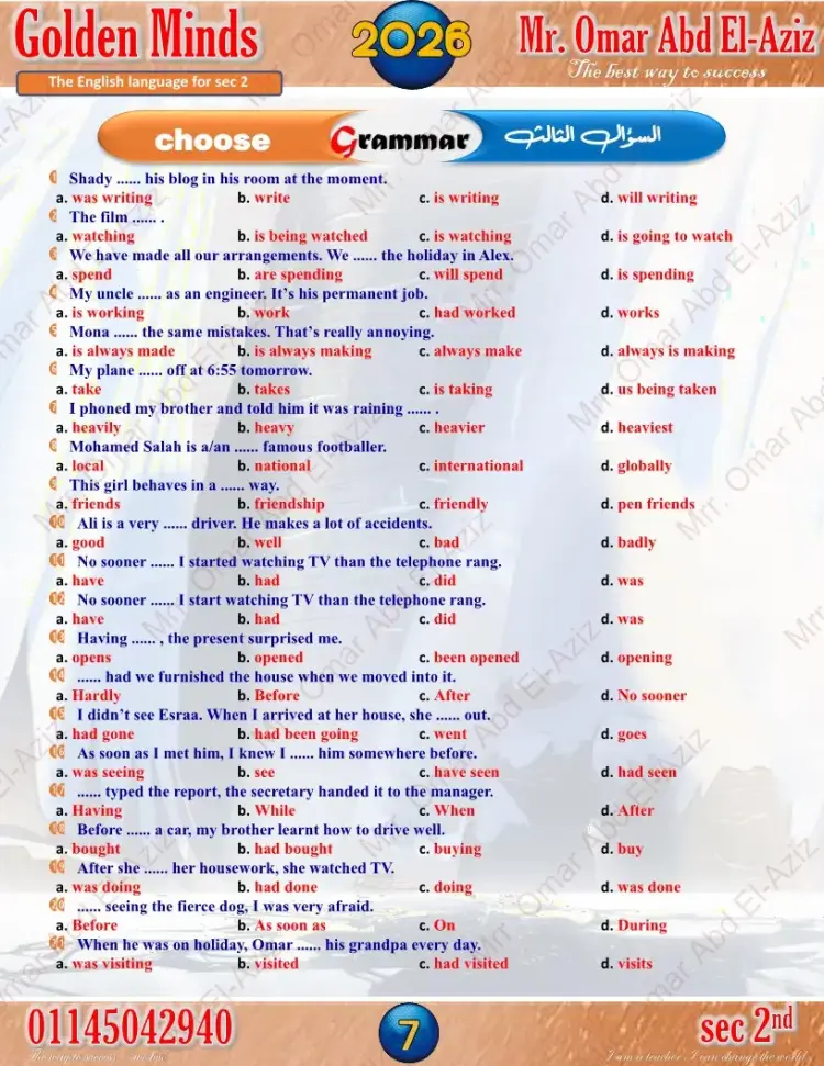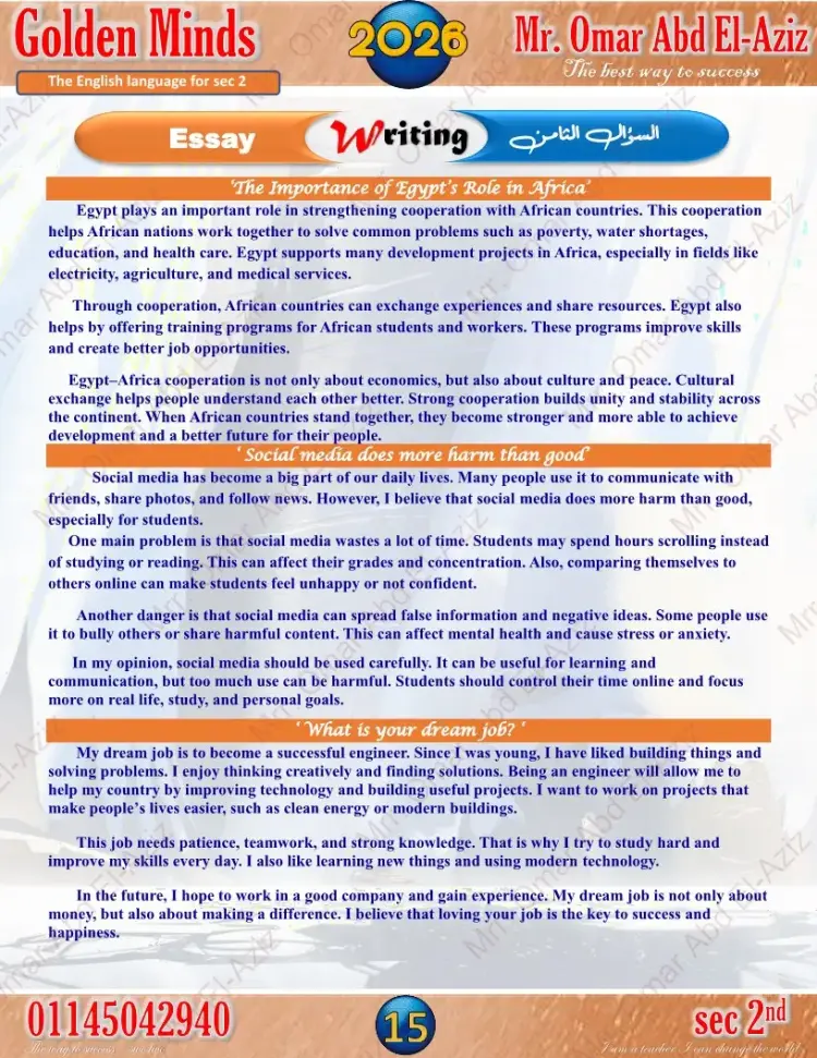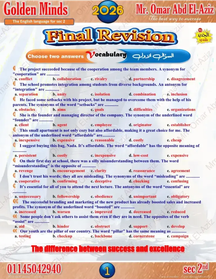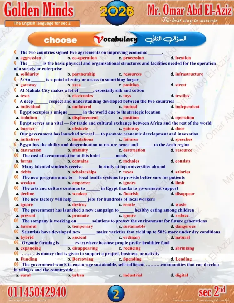 وقد حرصت الإدارات والسلاسل التعليمية والكثير من معلمي مادة اللغة الإنجليزية، على إعداد نماذج استرشادية لامتحانات الترم الأول للصف الثاني الثانوي لعام 2025 2026.