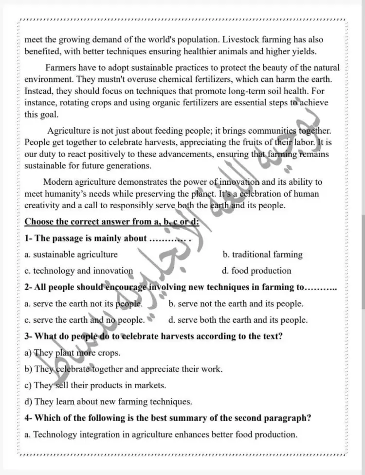 2. Choose the correct answer from a, b, c or d: