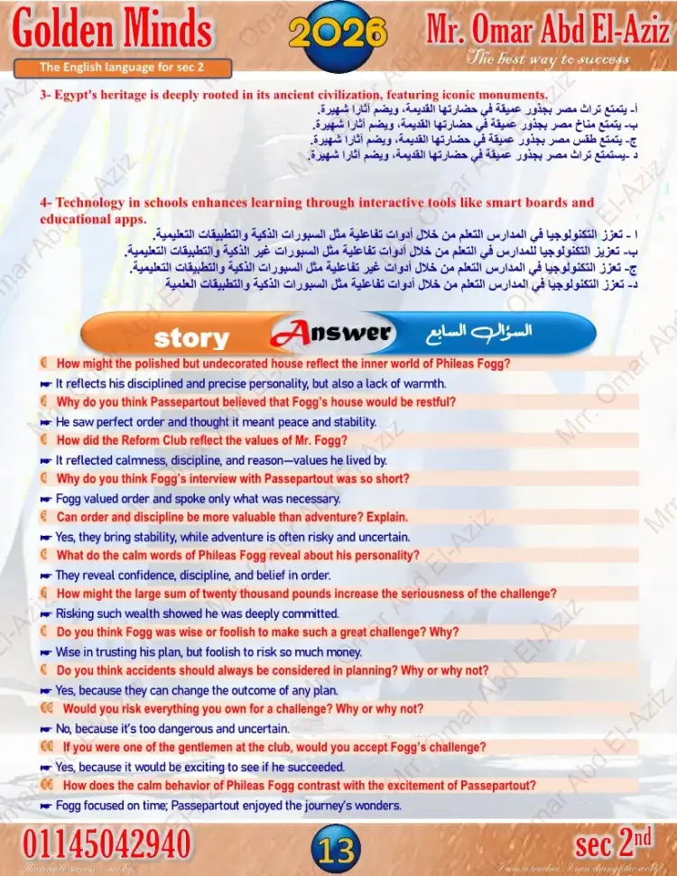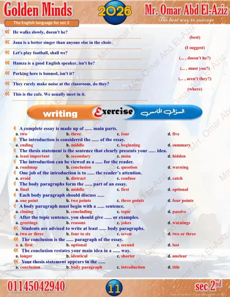 النماذج الاسترشادية لغة إنجليزية للصف الثاني الثانوي الترم الأول 2026