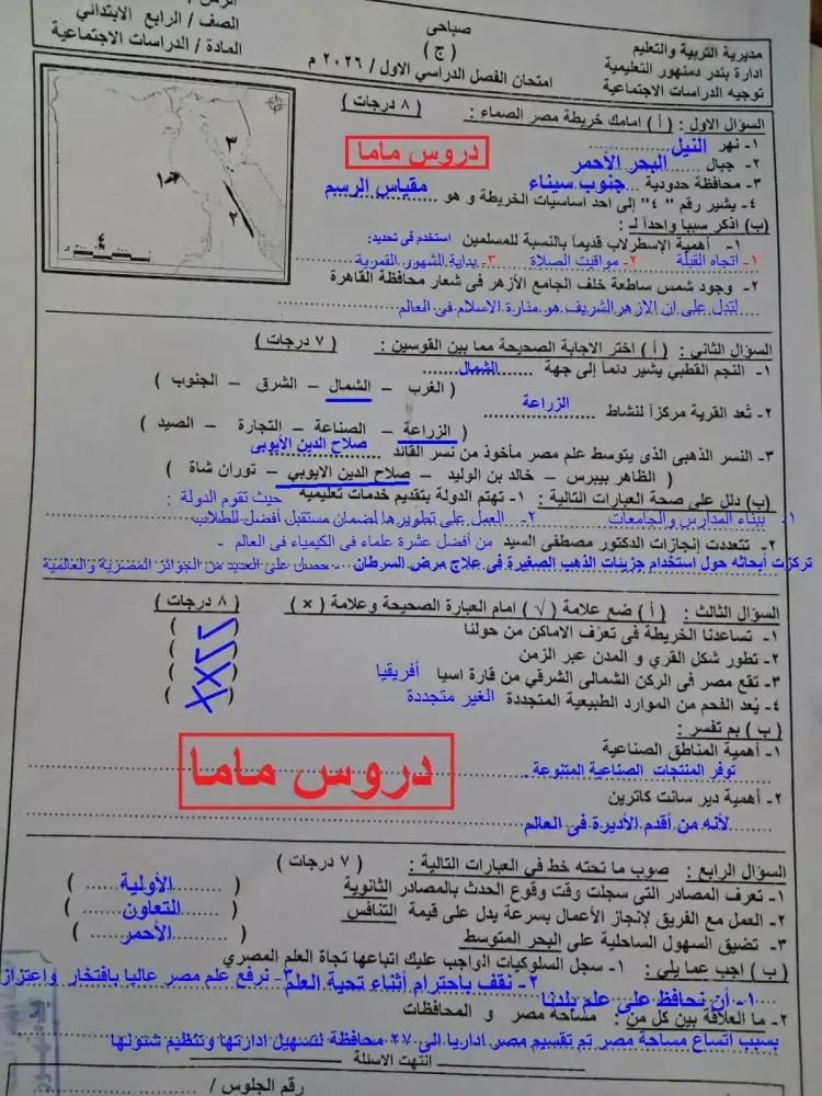 حل امتحان الدراسات رابعة ابتدائي البحيرة الترم الأول 2026