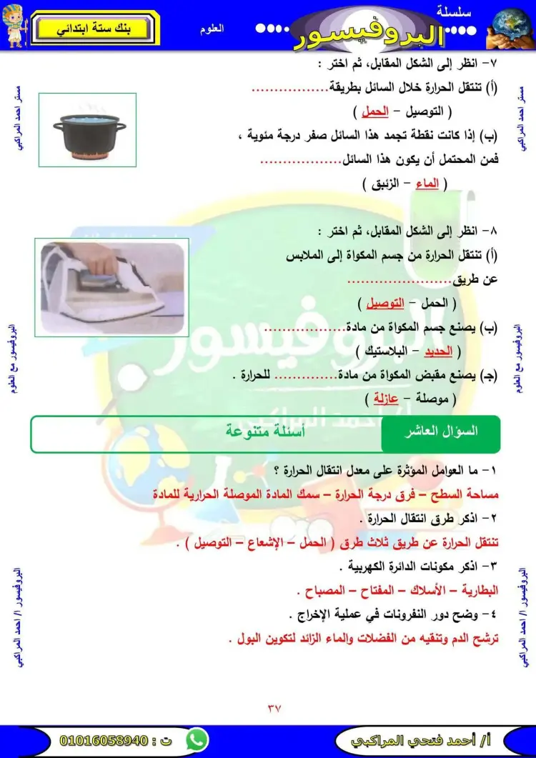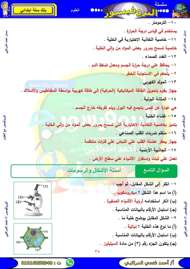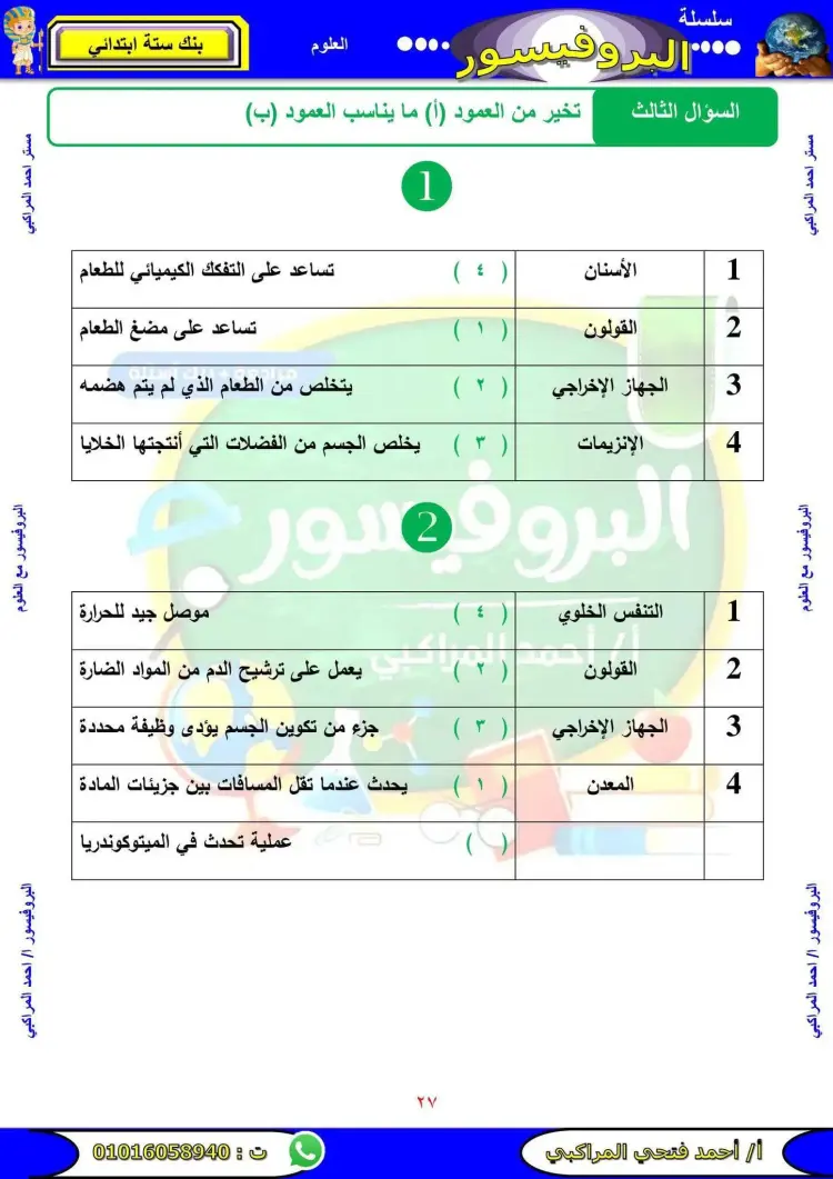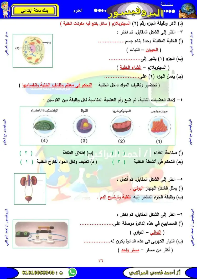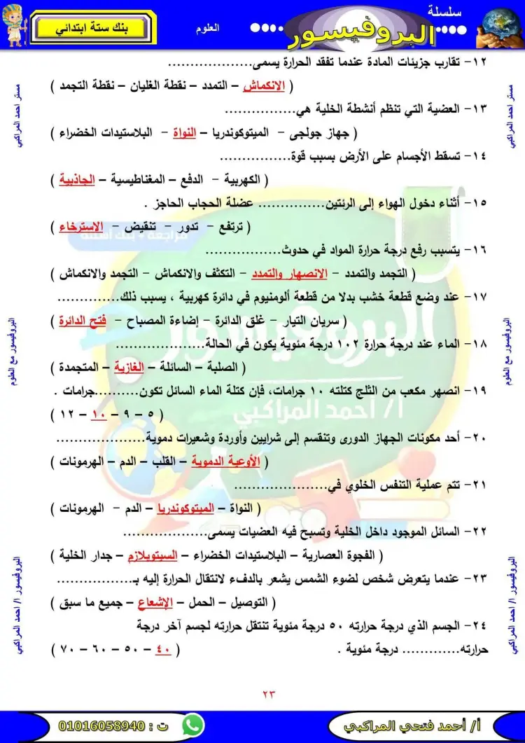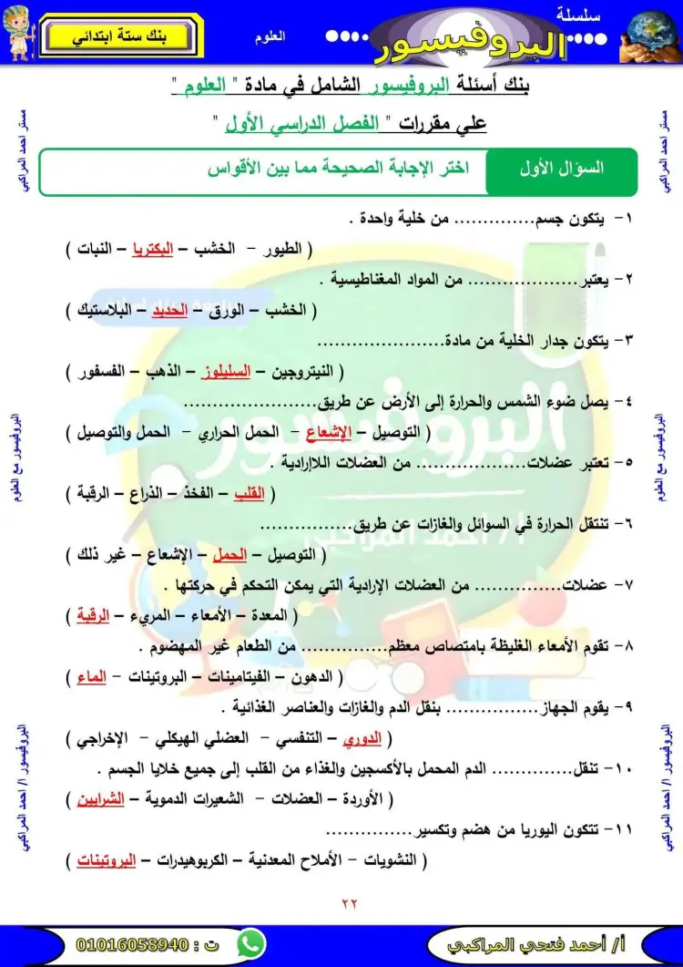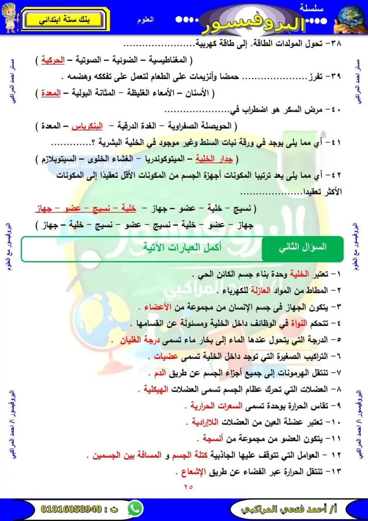 تتضمن مراجعة علوم الصف السادس الابتدائي الترم الأول 2026 عدد متنوع من الأسئلة التي تشمل المنهج بالكامل.