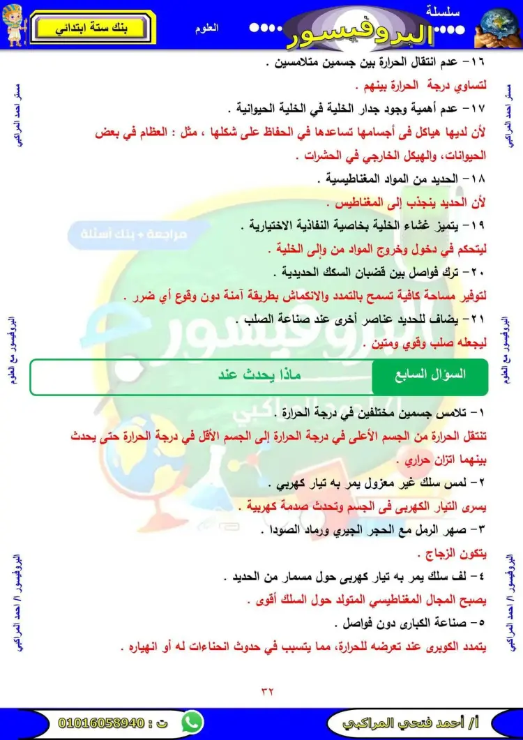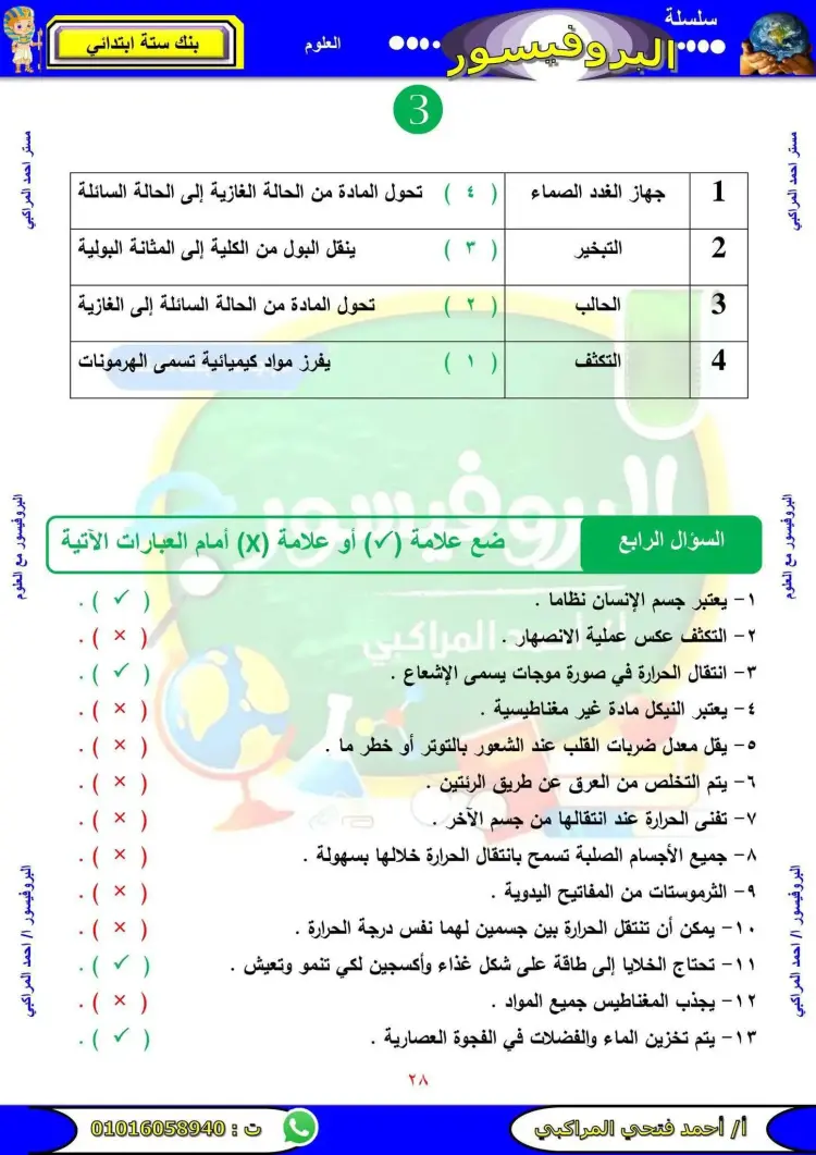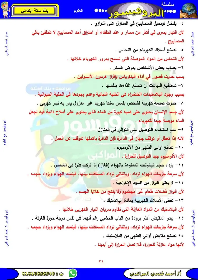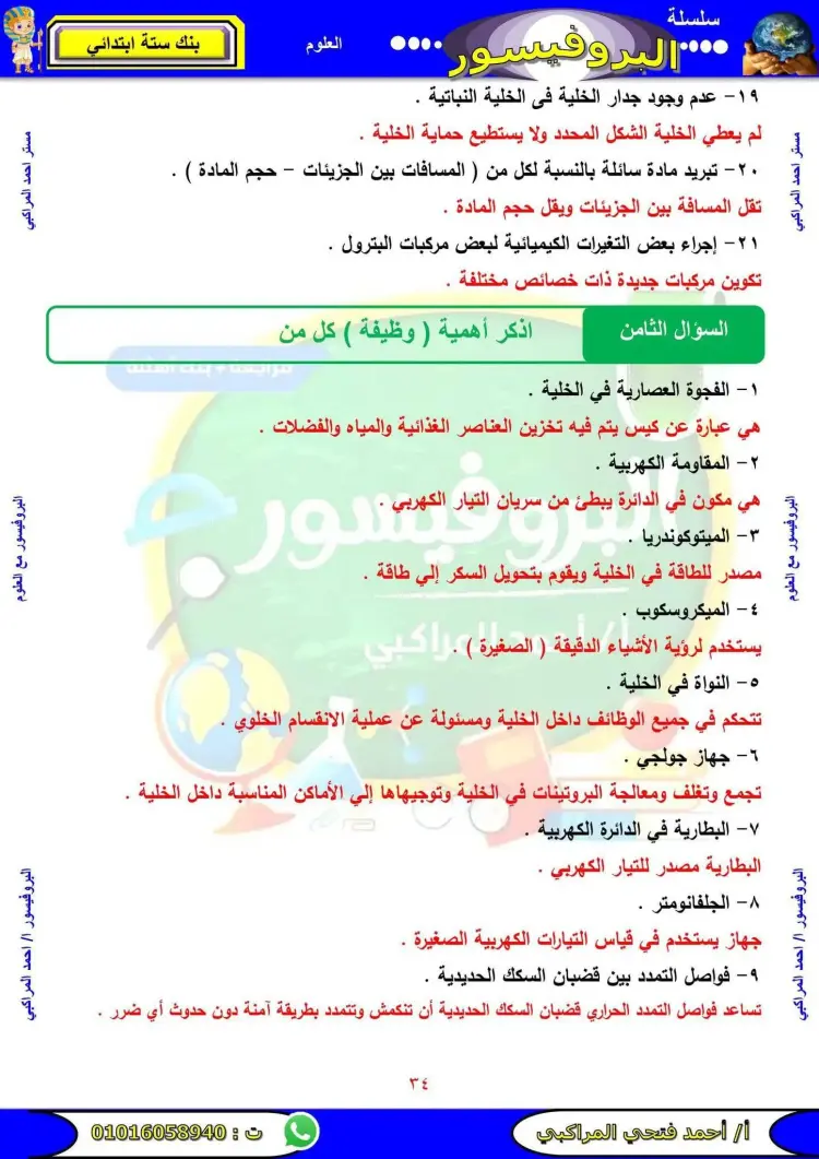 مراجعة علوم الصف السادس الابتدائي الترم الأول 2026 سؤال وجواب