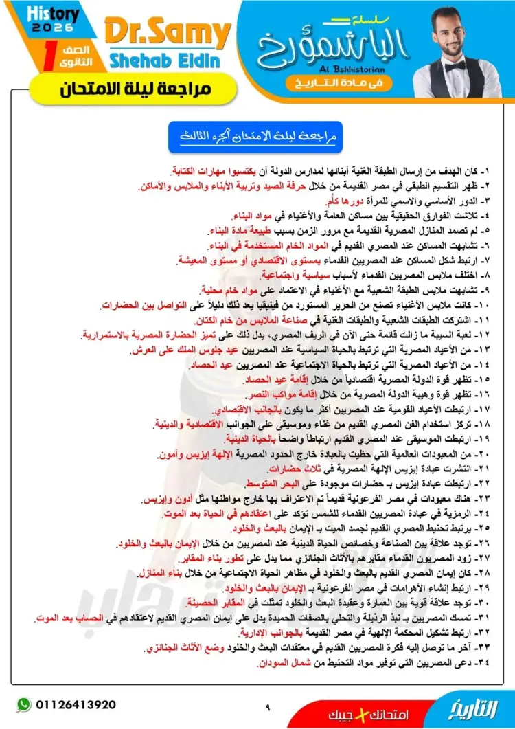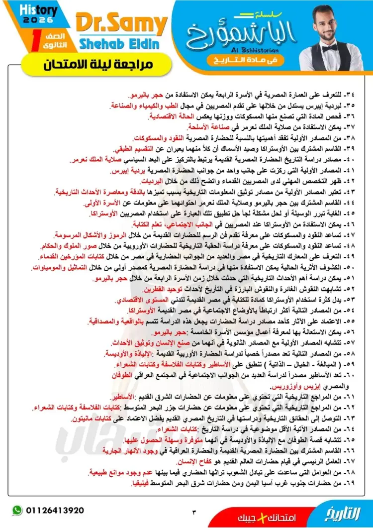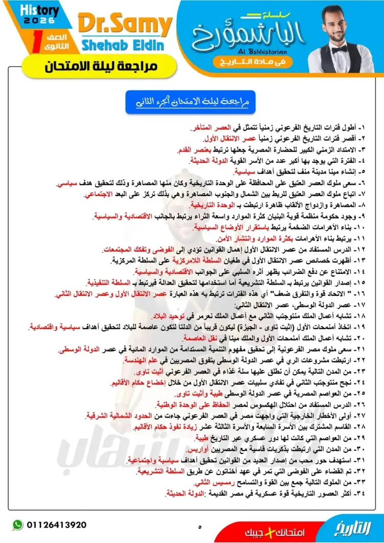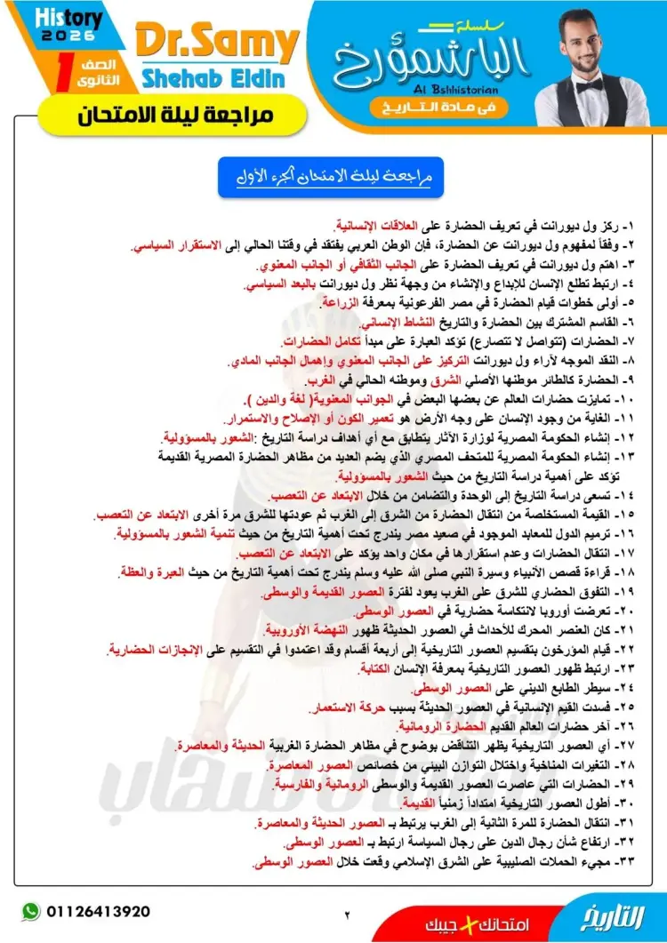 مراجعة تاريخ الصف الأول الثانوي الترم الأول 2026