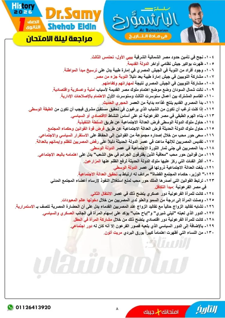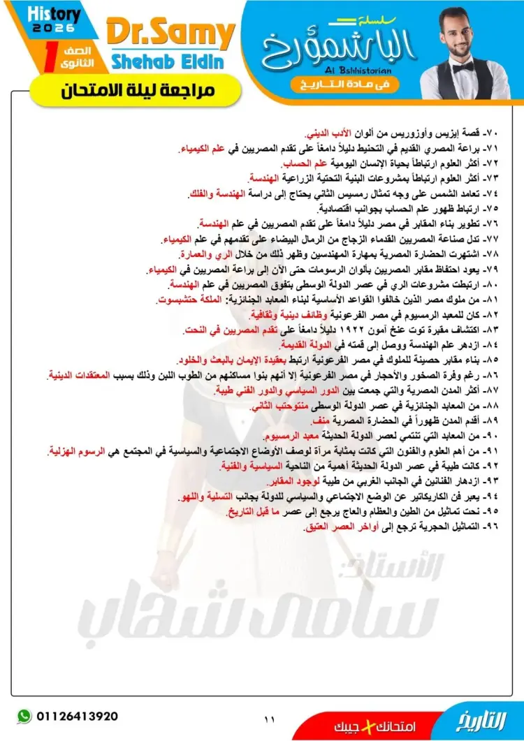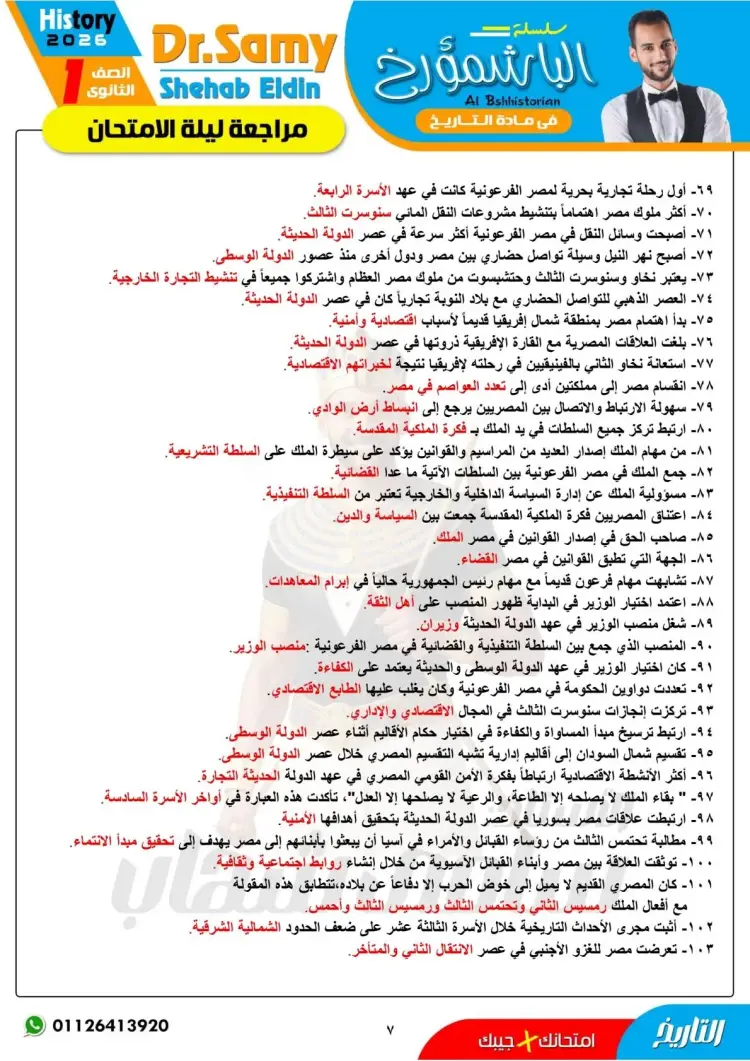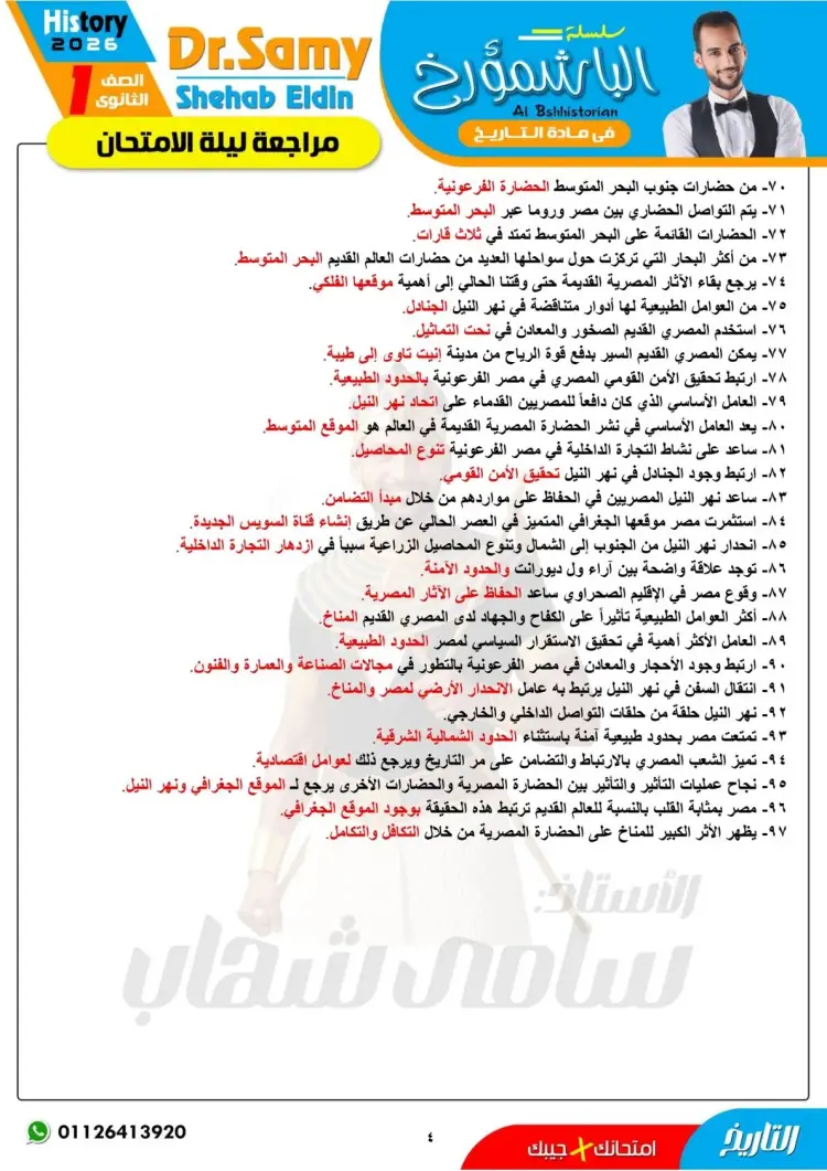 مراجعة تاريخ الصف الأول الثانوي الترم الأول 2026