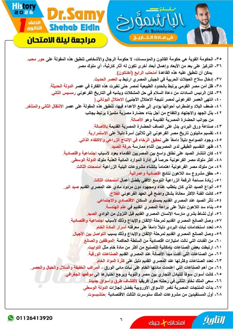 يستطيع الطلاب الحصول على مراجعة تاريخ أولى ثانوي الترم الأول 2026، استعدادا لخوض الامتحان.