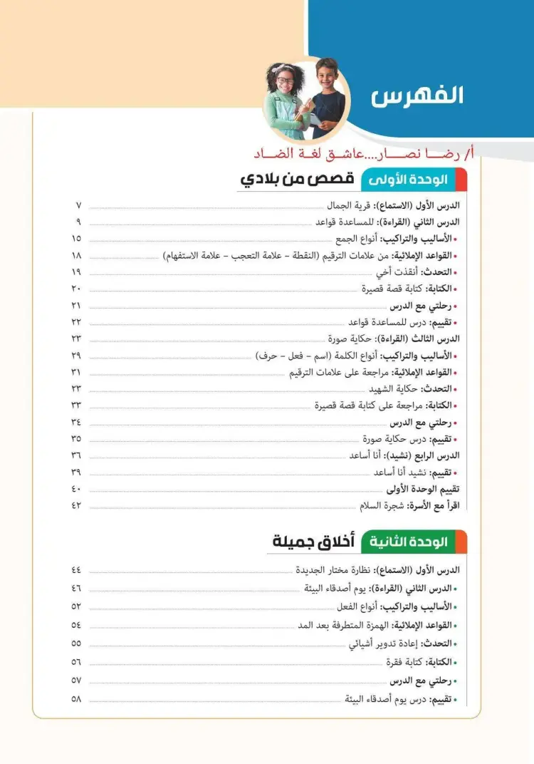 يستعرض المنهج في وحدته الأولى قصصا مستوحاة من البيئة المصرية، تليها وحدات تركز على الأخلاق والمسؤولية المجتمعية.