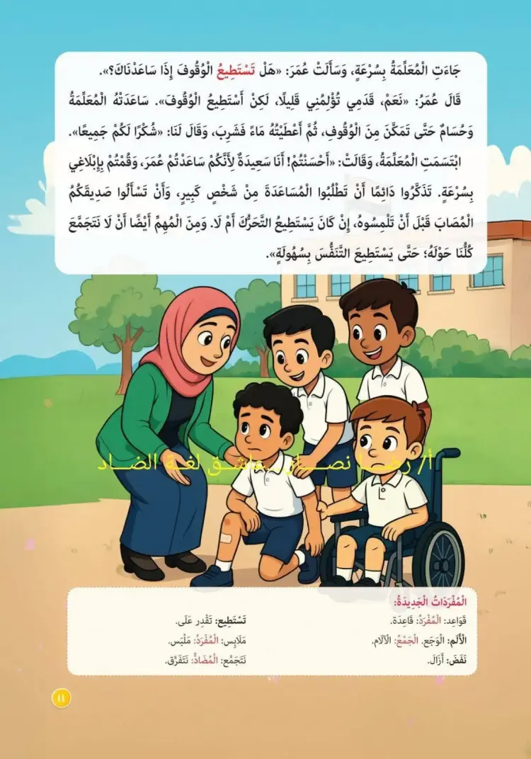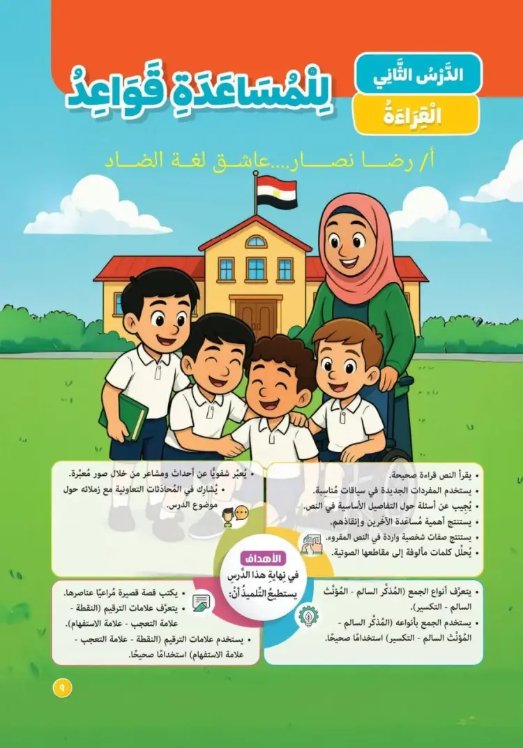 ويعد هذا المحتوى تحولا نوعيا في المناهج، حيث لا يكتفي بتعليم اللغة، بل يدمج معها مهارات الإسعافات الأولية النفسية والجسدية بصورة مبسطة تناسب سن 9 سنوات.