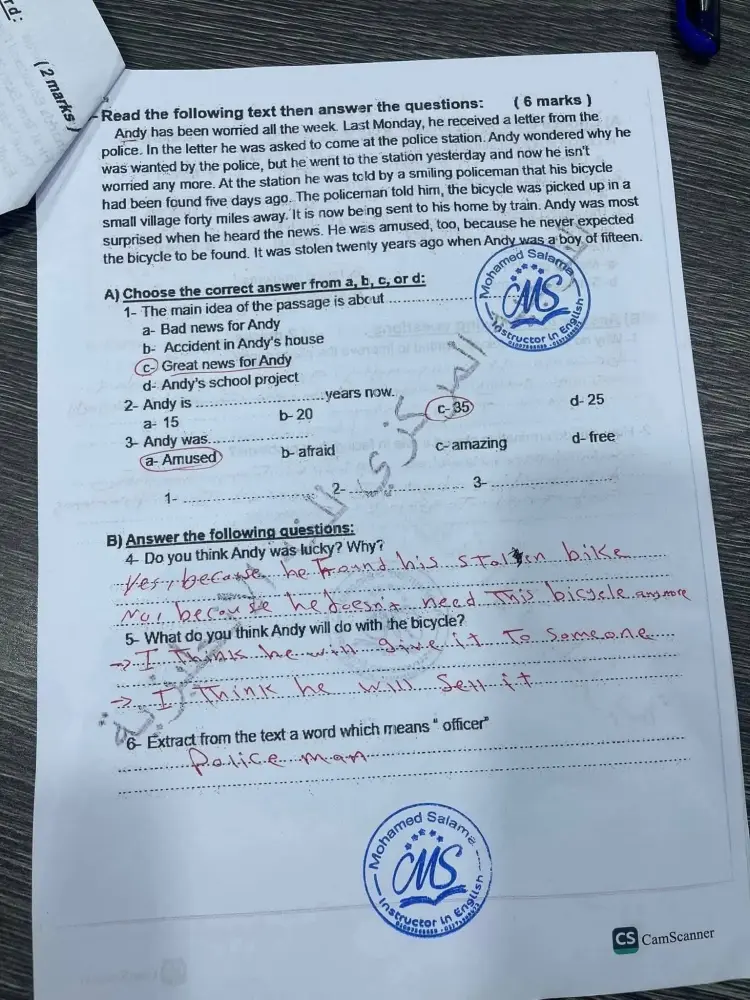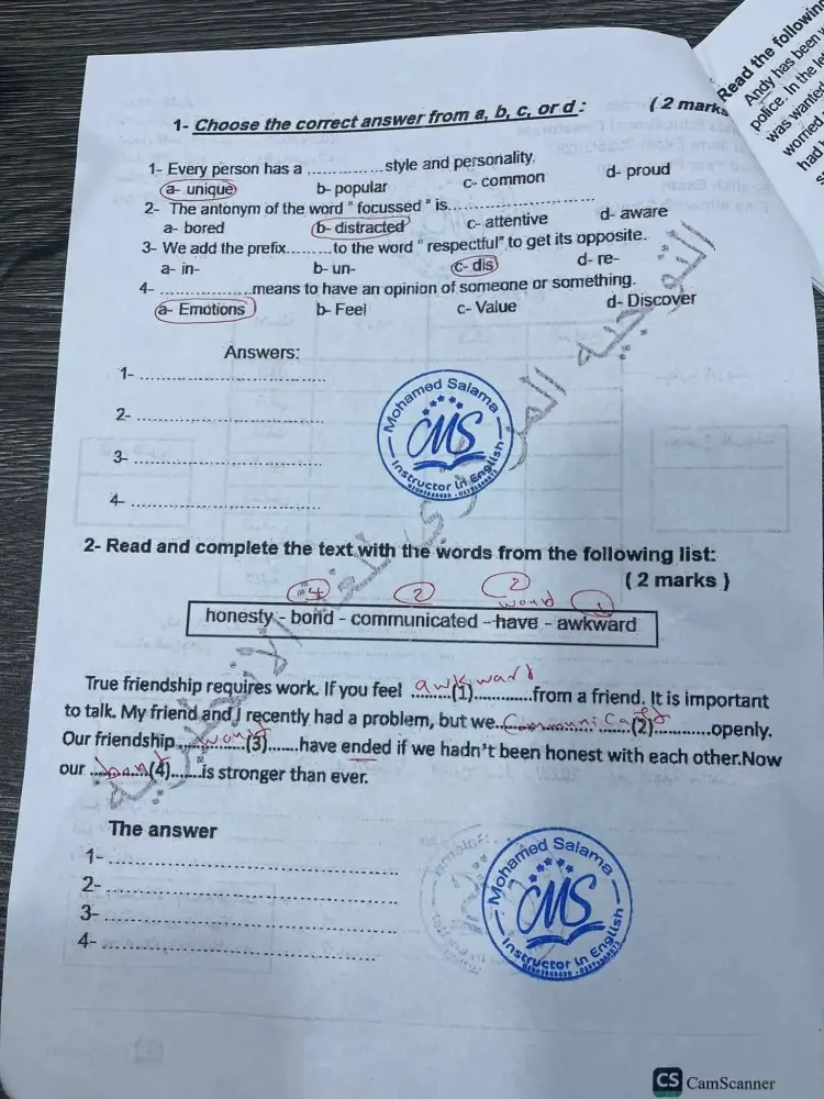 وتمثلت أسئلة امتحان الإنجليزي بمحافظة الشرقية في الآتي: