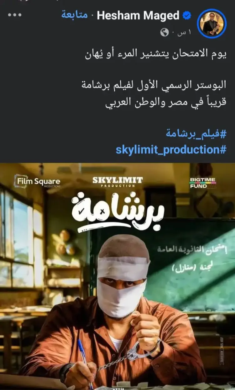 يستعد الفنان هشام ماجد لطرح فيلمه الجديد برشامة في دور العرض السينمائي خلال الفترة المقبلة، والذي يسلط الضوء على ظاهرة الغش في امتحانات الثانوية العامة بشكل كوميدي واجتماعي.