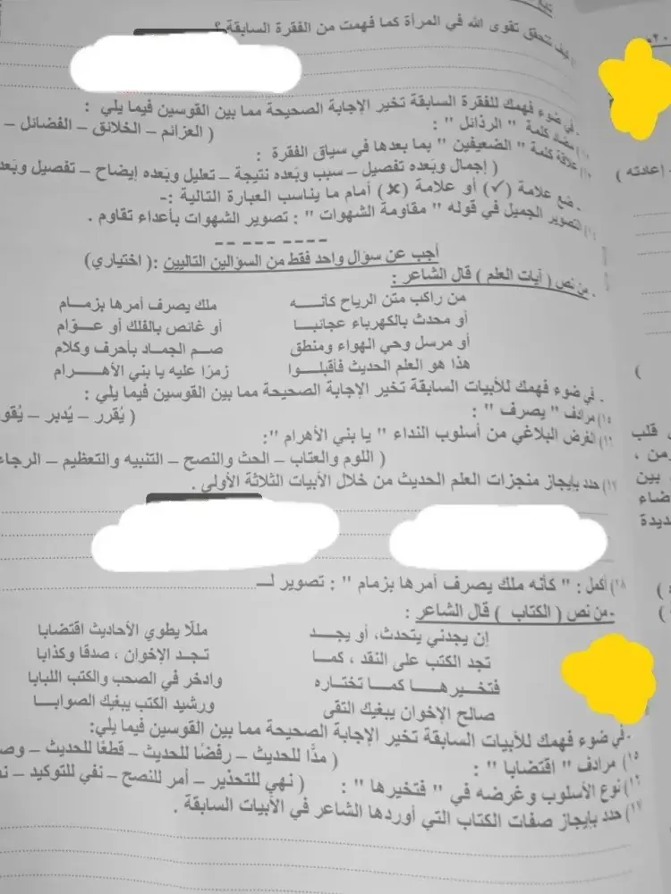 يمكنك الحصول على ورقة أسئلة امتحان اللغة العربية الصف الثالث الإعدادي الترم الأول محافظة القليوبية 2026 لمراجعة الامتحان من خلال الصور التالية.
