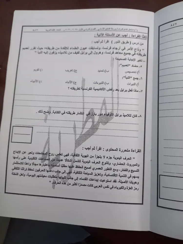 يمكنك الحصول على ورقة امتحان عربي الصف الثالث الإعدادي الترم الأول محافظة القاهرة 2026 من خلال الصور التالية.