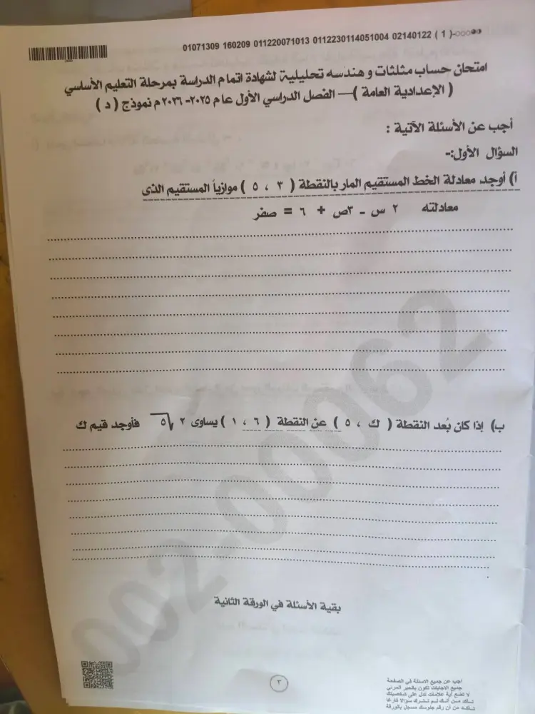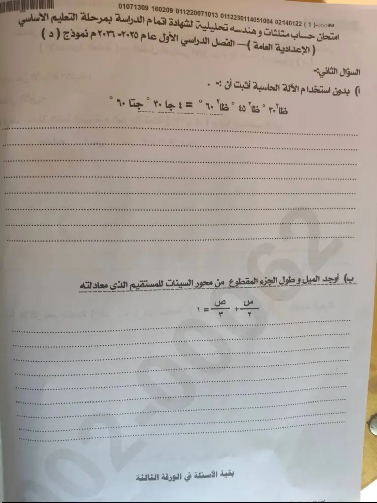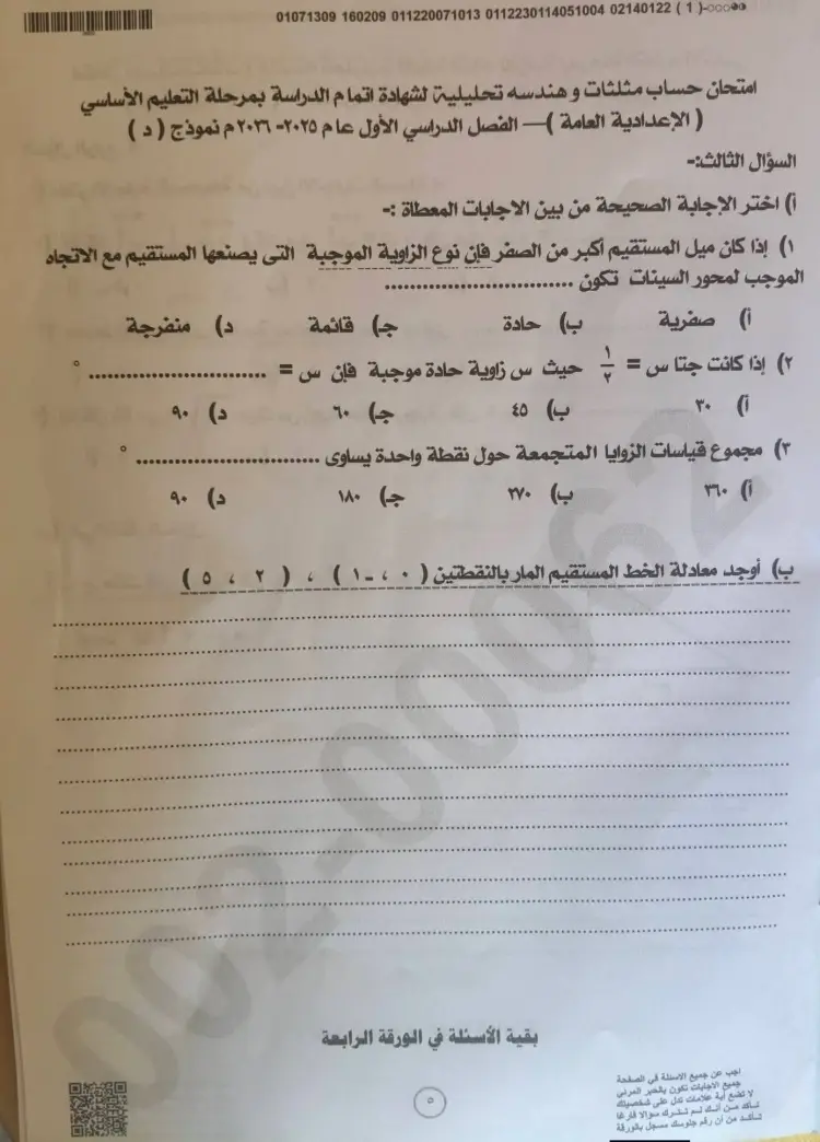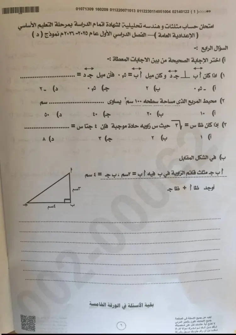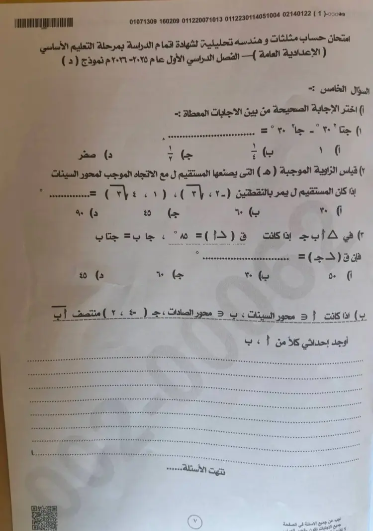 ينشر شبابيك نموذج إجابة لالخطوات لأسئلة امتحان مادة الهندسة وحساب المثلثات للصف الثالث الإعدادي بمحافظة أسيوط الترم الأول للعام الدراسي 2025 2026.