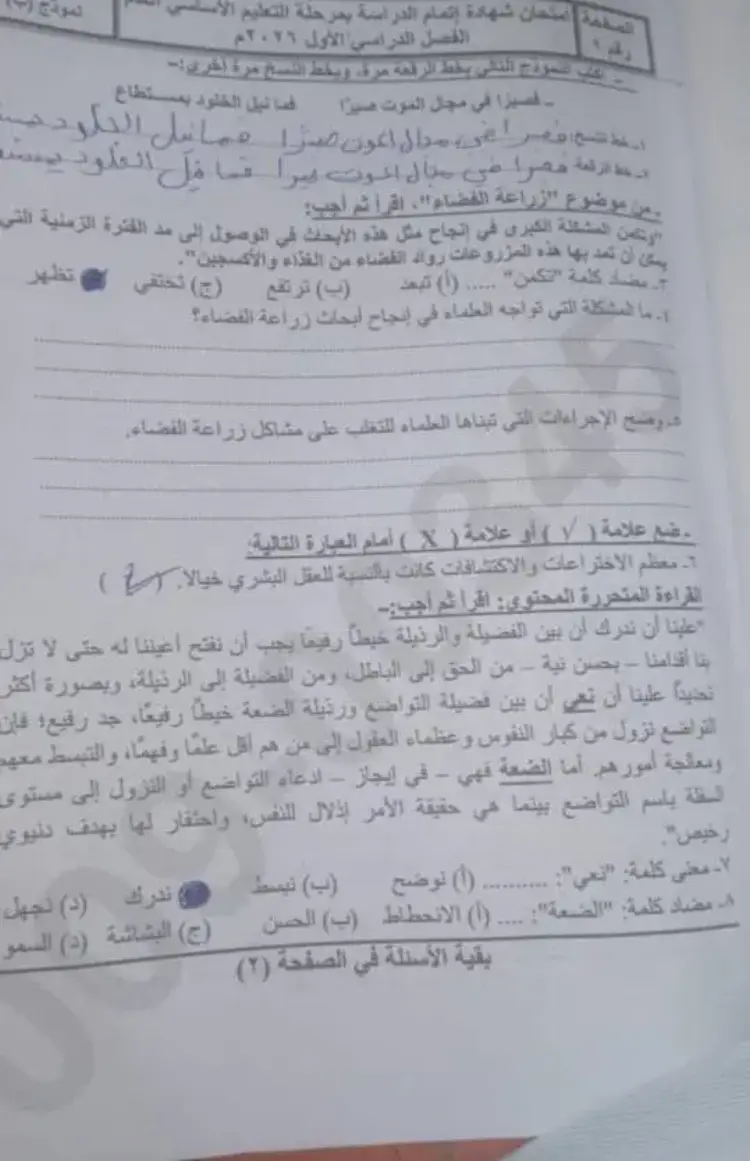 يمكنك مراجعة حل امتحان عربي الصف الثالث الإعدادي محافظة سوهاج الترم الأول 2026، للوقوف على مدى صحة أو خطأ الإجابات التي تم تدوينها في ورقة الإجابة.