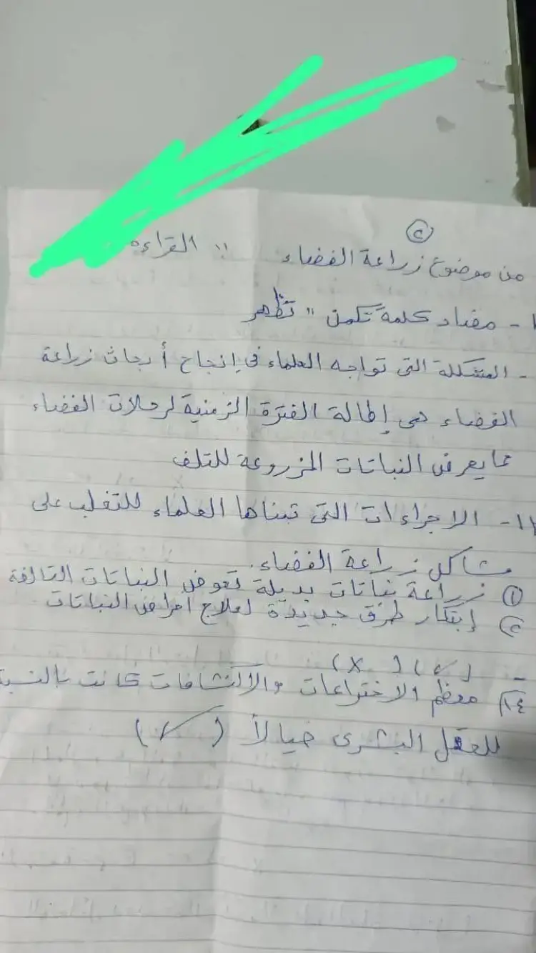 6- المشكلة التي تواجه العلماء في إنجاح أبحاث زراعة الفضاء: هي الوصول إلى مد الفترة الزمنية التي يمكن أن تمد بها هذه المزروعات رواد الفضاء من الغذاء والأكسجين.