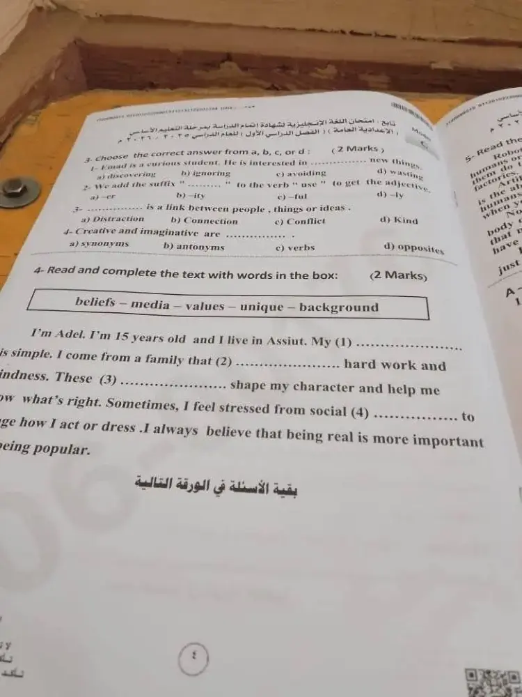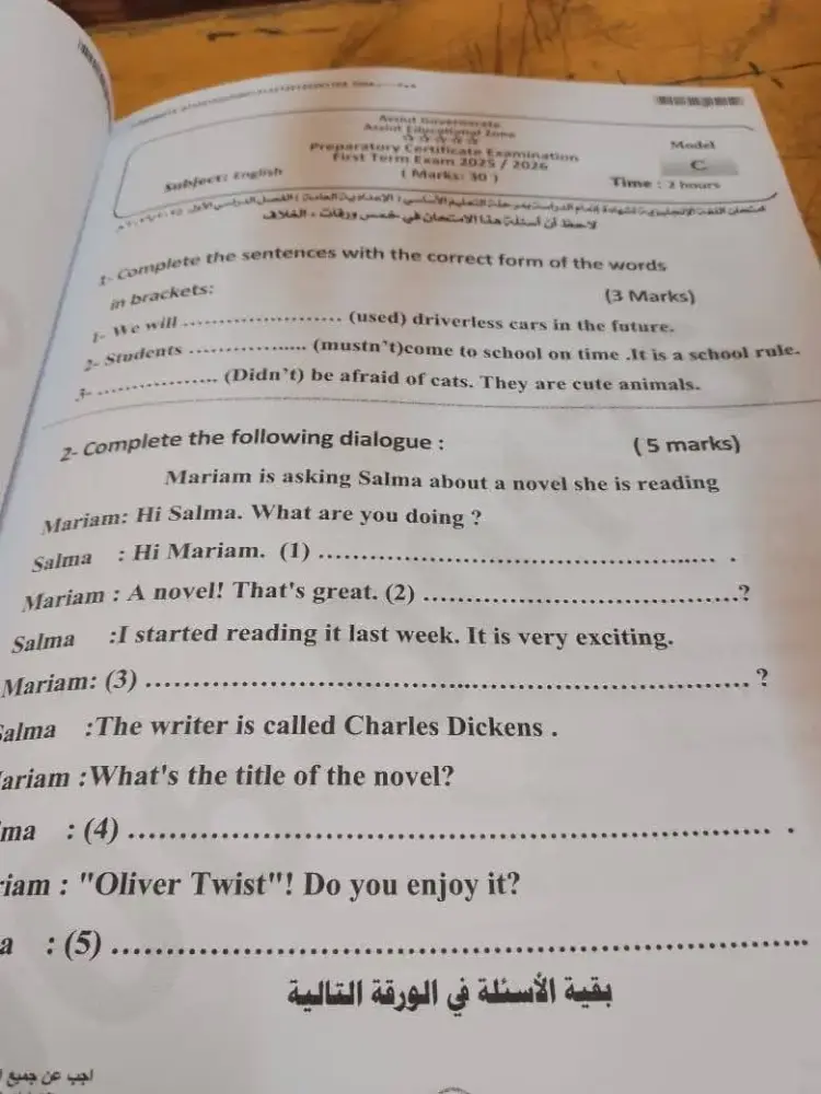 يمكنك الحصول على باقي إجابات امتحان إنجليزي للشهادة الإعدادية الترم الأول 2026 أسيوط من خلال الصور التالية.