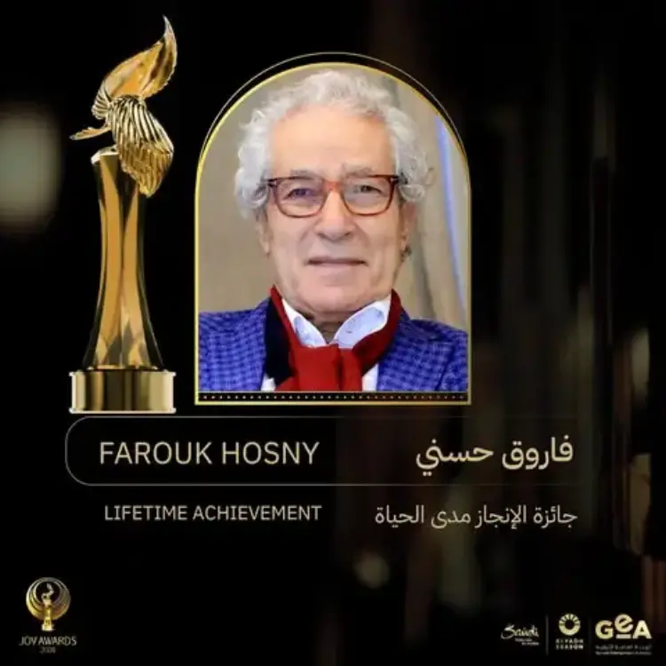 فاز فاروق حسني وزير الثقافة المصري الأسبق بجائزة الإنجاز مدى الحياة تقديرا لمسيرته وإسهاماته في الثقافة والفن، وجرى تكريمه وسط تصفيق واسع من الحضور.