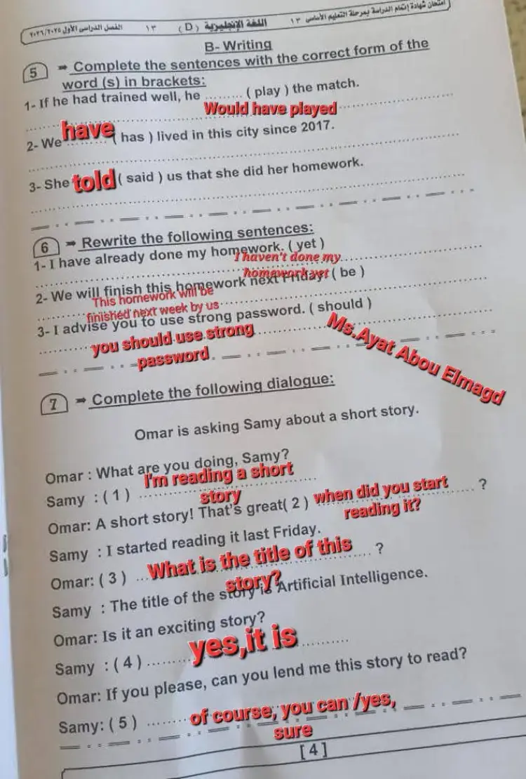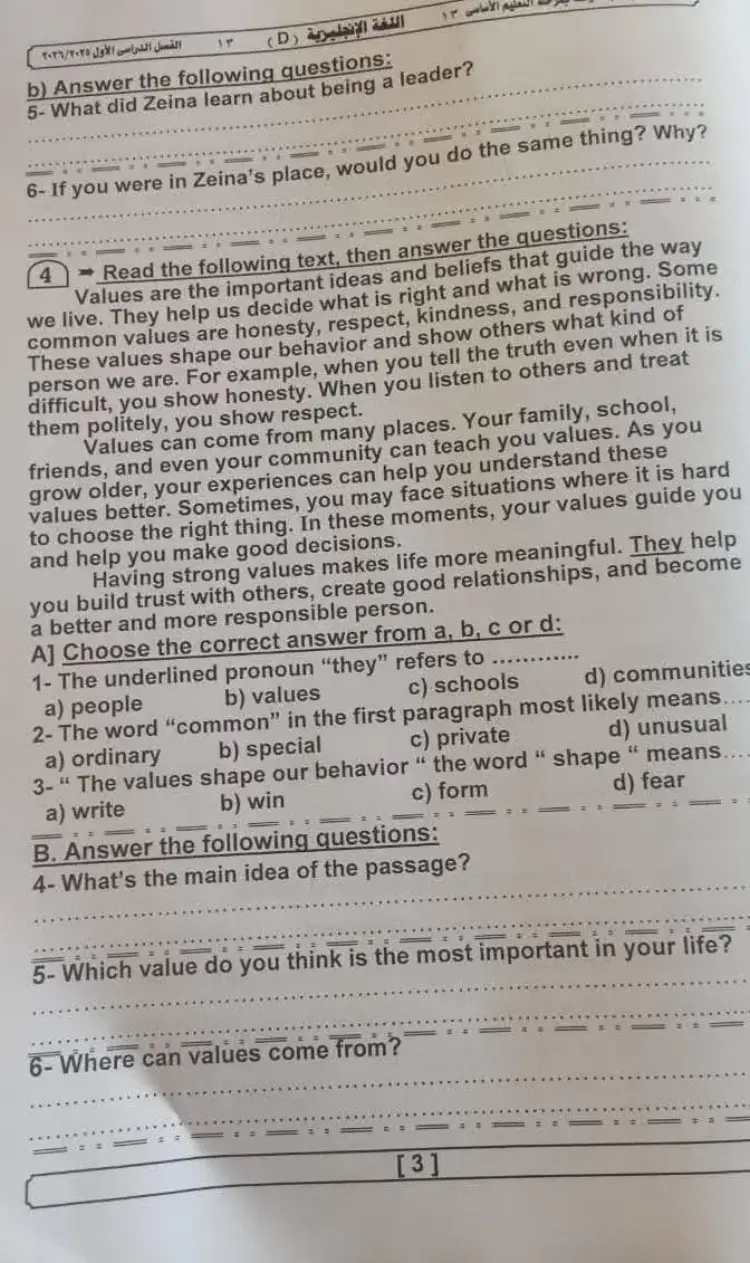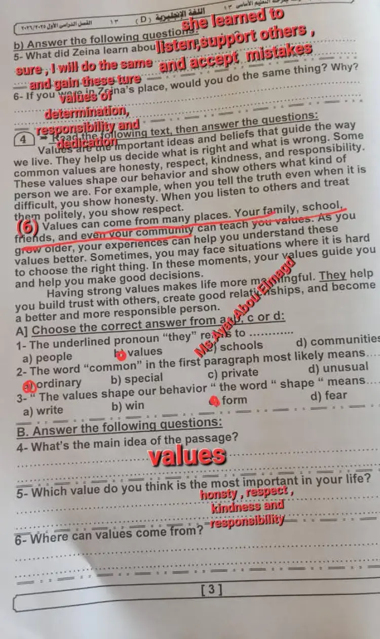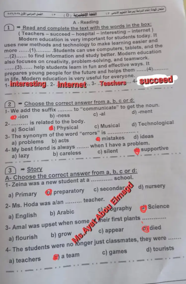ننشر إجابات امتحان إنجليزي الصف الثالث الإعدادي محافظة الجيزة الترم الأول 2026 على النحو التالي:
