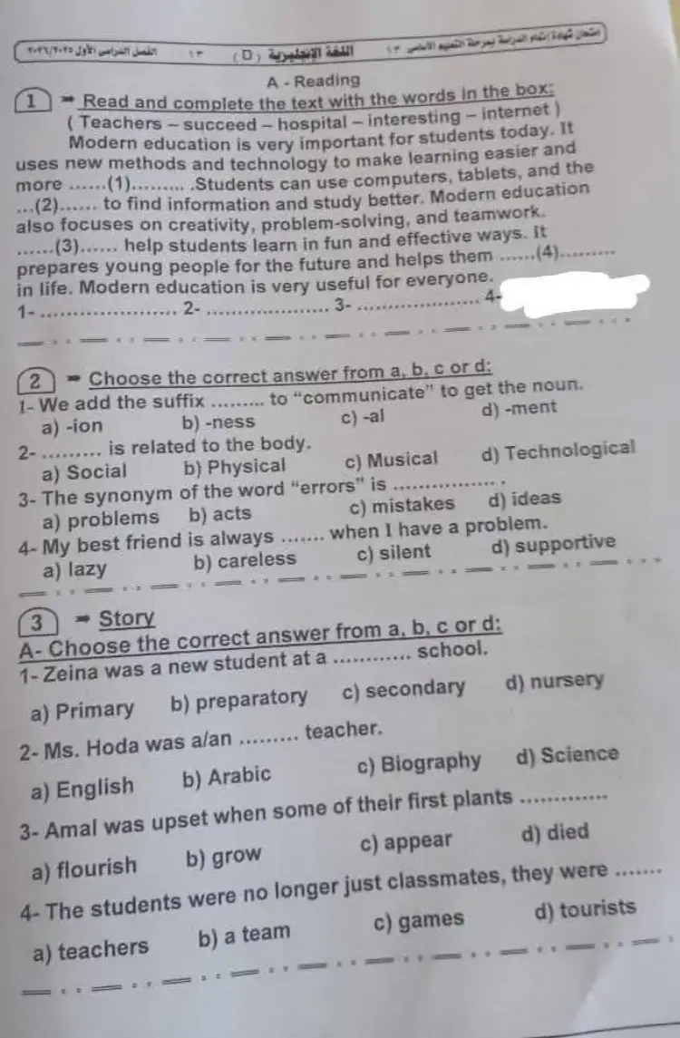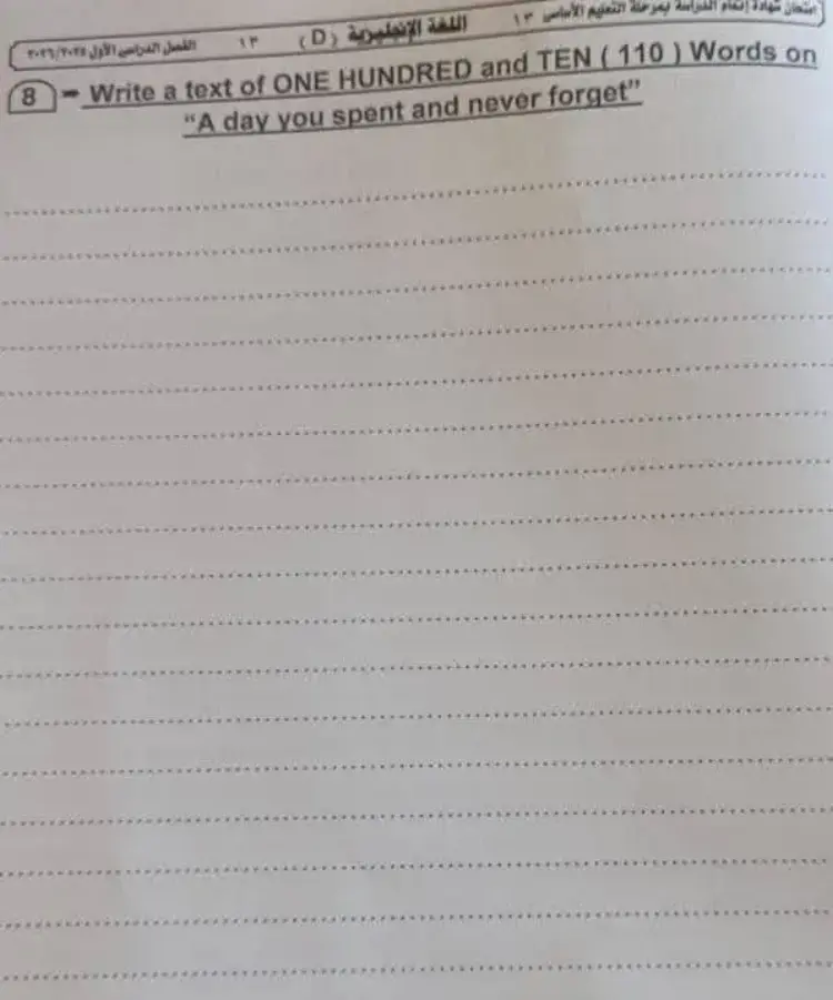 ورقة أسئلة امتحان اللغة الإنجليزية للشهادة الإعدادية الترم الأول 2026 الجيزة