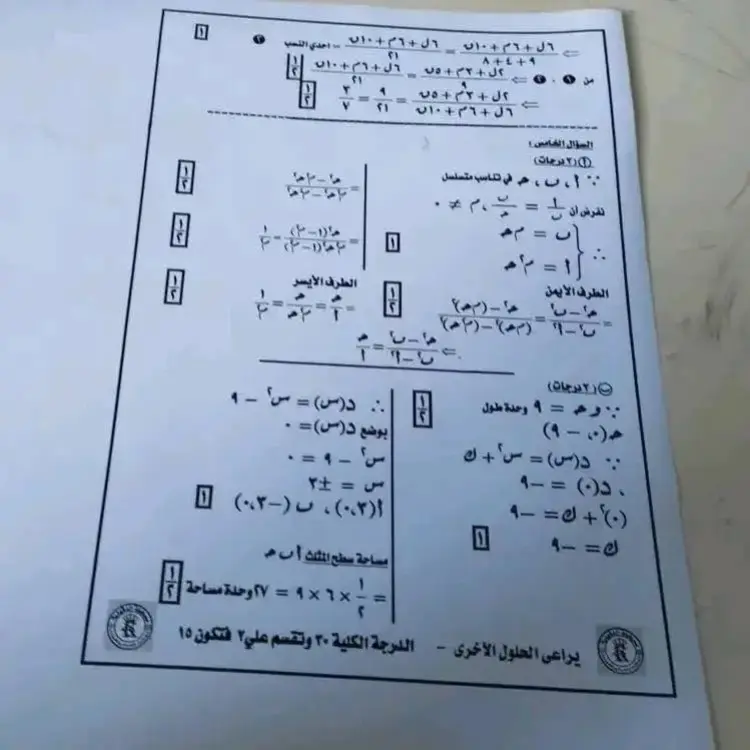 يشار أن الدرجة الكلية للامتحان هي 30 درجة وتُقسم على 2 لتصبح الدرجة النهائية من 15.