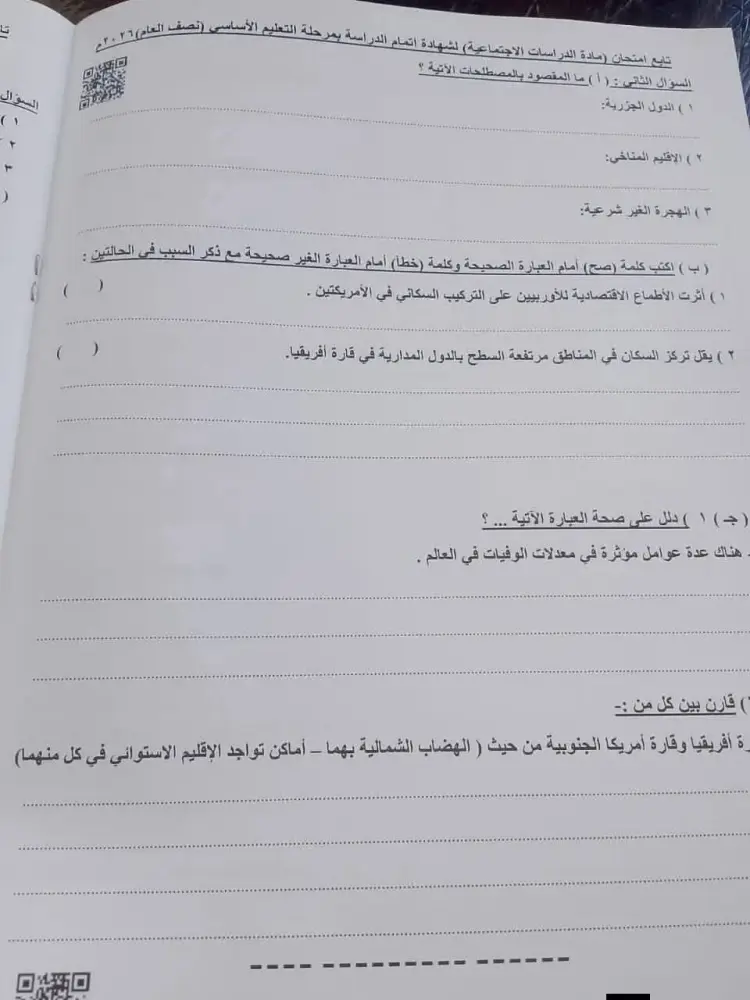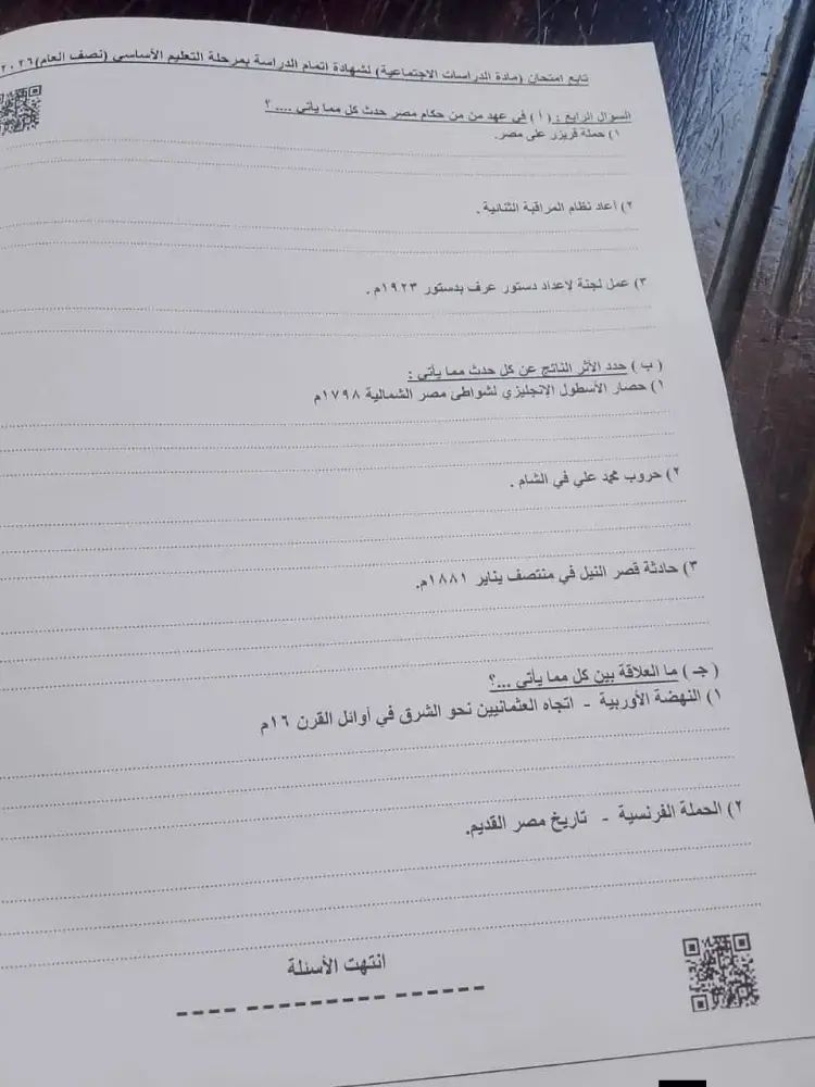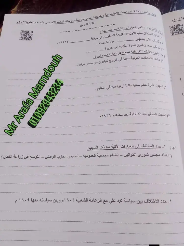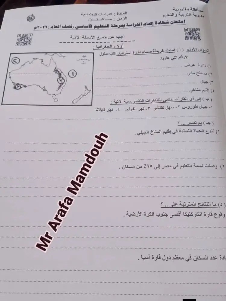 ورقة أسئلة امتحان دراسات للشهادة الإعدادية الترم الأول 2026 القليوبية
