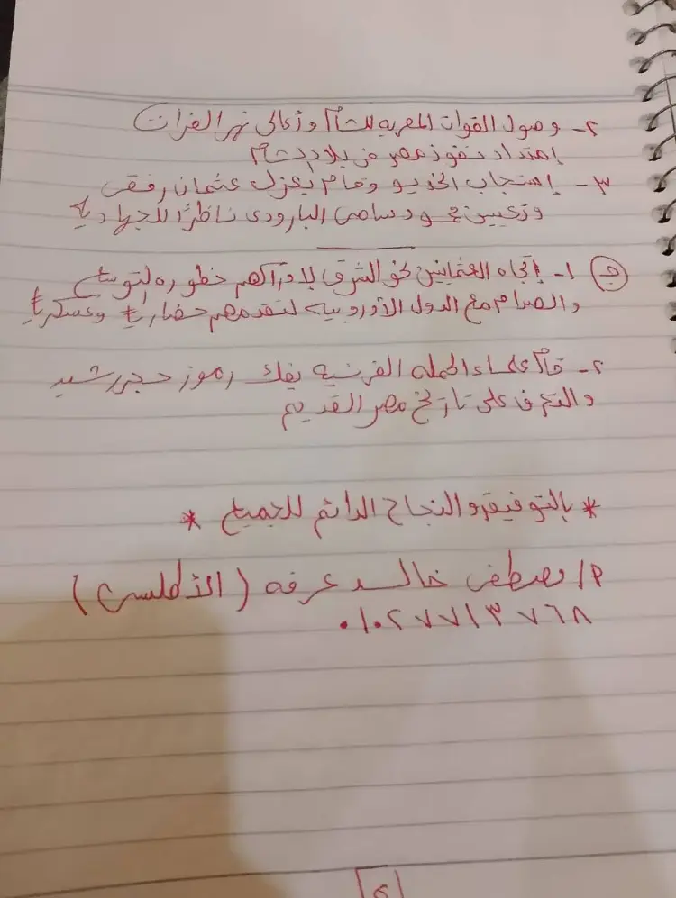 جاءت إجابات امتحان الدراسات الصف الثالث الإعدادي الترم الأول 2026 القليوبية على النحو التالي: