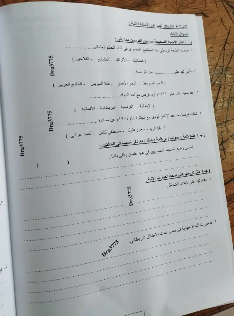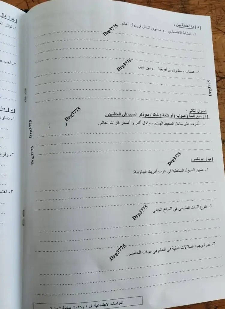 ورقة أسئلة امتحان دراسات للشهادة الإعدادية الترم الأول 2026 السويس