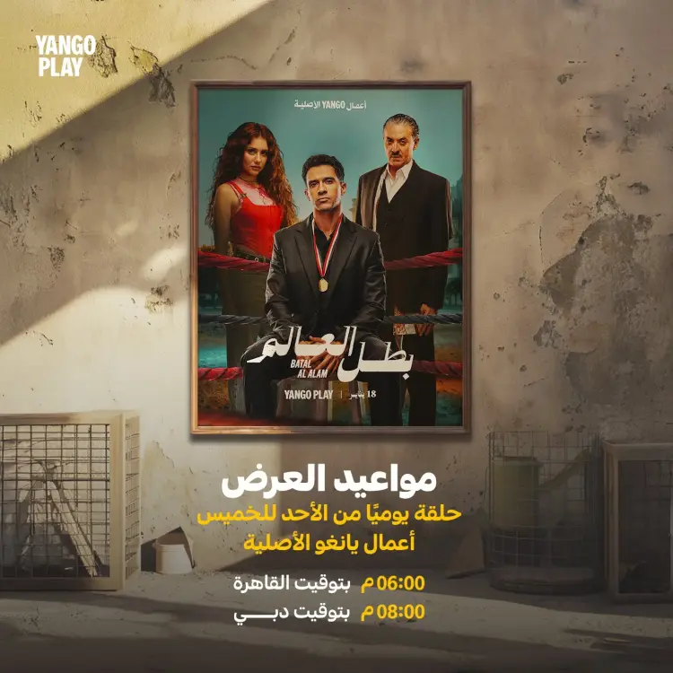 يذاع مسلسل بطل العالم عبر منصة يانجو بلاي وفق جدول عرض أسبوعي يتيح للمشاهدين متابعة تطور الأحداث بوتيرة متصاعدة تجمع بين الدراما والتشويق.
