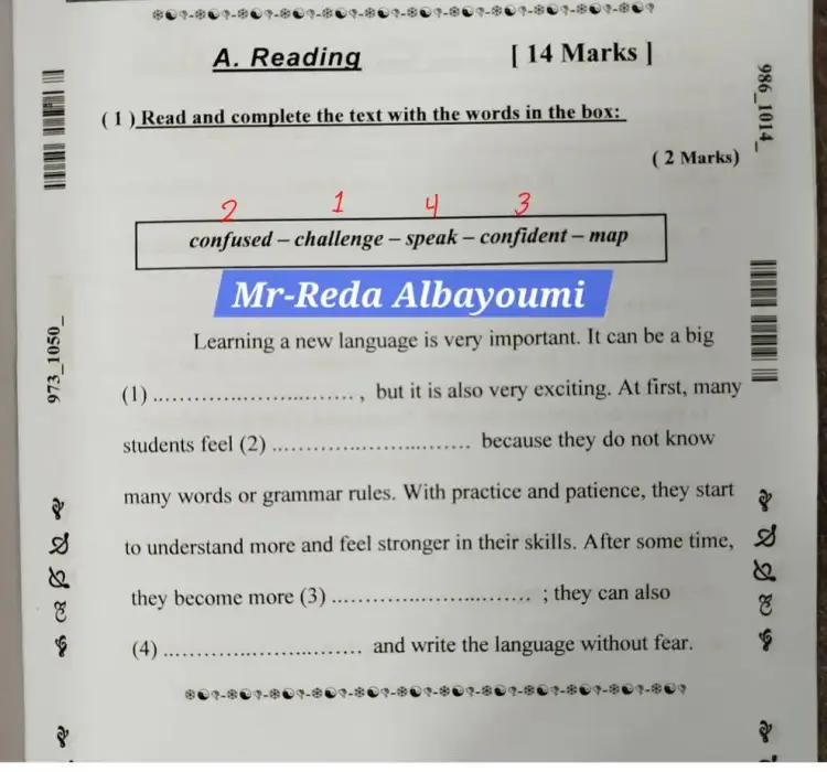 Learning a new language is very important. It can be a big (1) ......................... , but it is also very exciting. At first, many students feel (2) ......................... because they do not know many words or grammar rules. With practice and patience, they start to understand more and feel stronger in their skills. After some time, they become more (3) ......................... ; they can also (4) ......................... and write the language without fear.