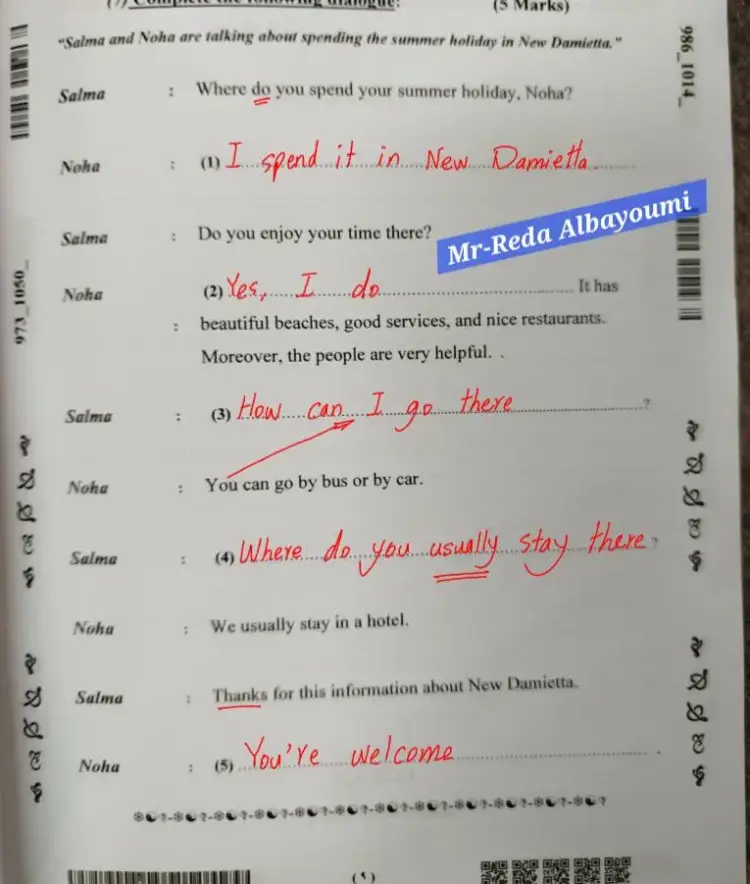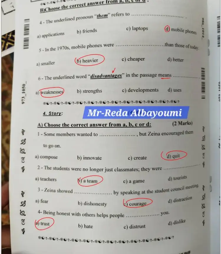 وفر معلمون بوزارة التربية والتعليم نموذجا للإجابة على أسئلة امتحان اللغة الإنجليزية للصف الثالث الإعدادي الفصل الدراسي الأول 2025-2026 بمحافظة الغربية.