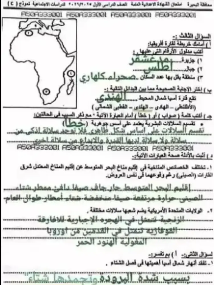 حل امتحان الدراسات للصف الثالث الإعدادي محافظة البحيرة الترم الأول 2026