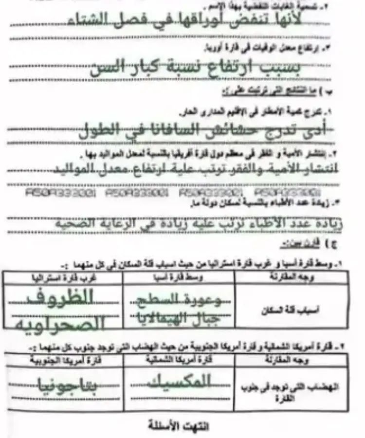 مرفق بالأسفل ورقة الاختبار بالإجابات، ومثال الأسئلة الواردة فيه ما يلي: