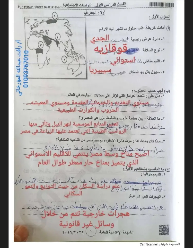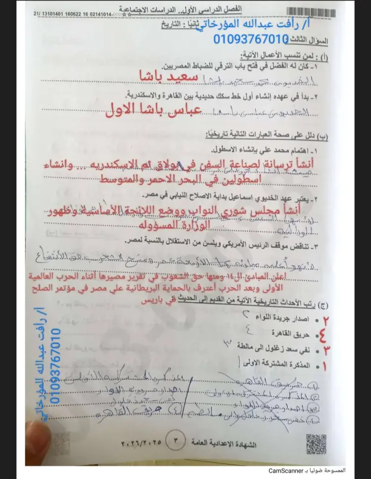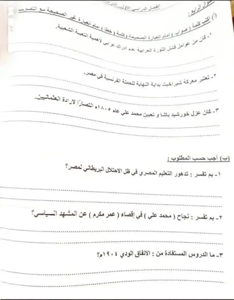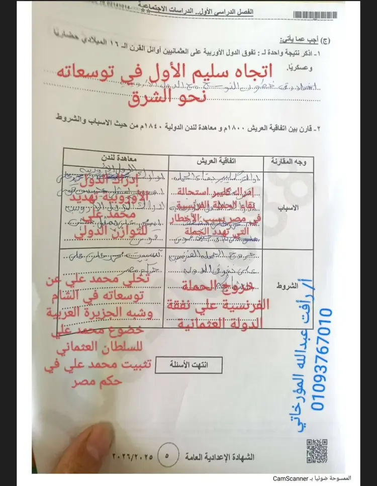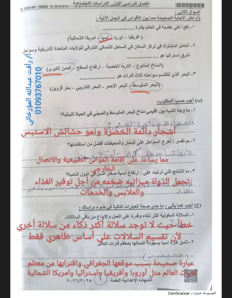 جاءت إجابات امتحان دراسات الصف الثالث الإعدادي الترم الأول محافظة بني سويف 2026 على النحو التالي: