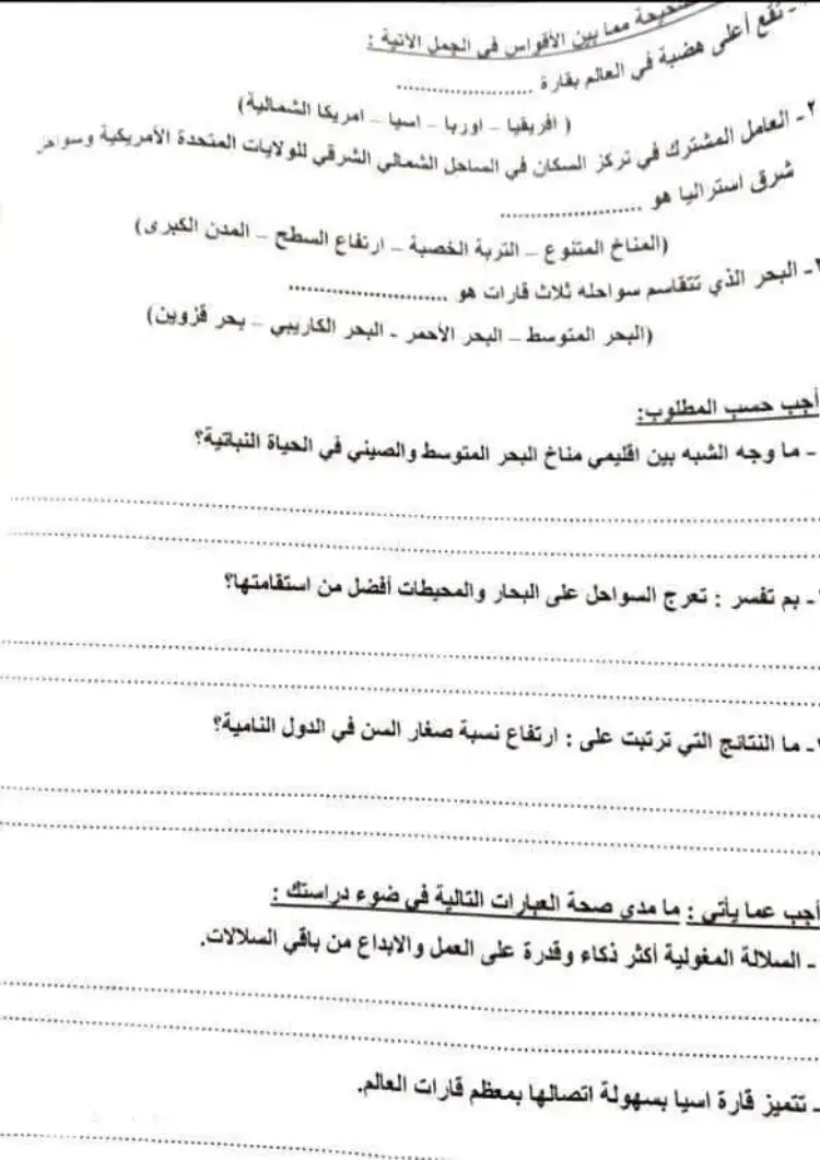 3. ماذا كان يحدث إذا: مرت دائرة الاستواء بوسط مصر من الناحية المناخية؟