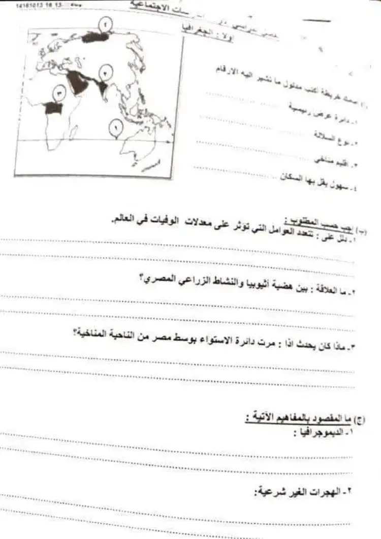 أولا: الجغرافيا (أ) أمامك خريطة، اكتب مدلول الأرقام: