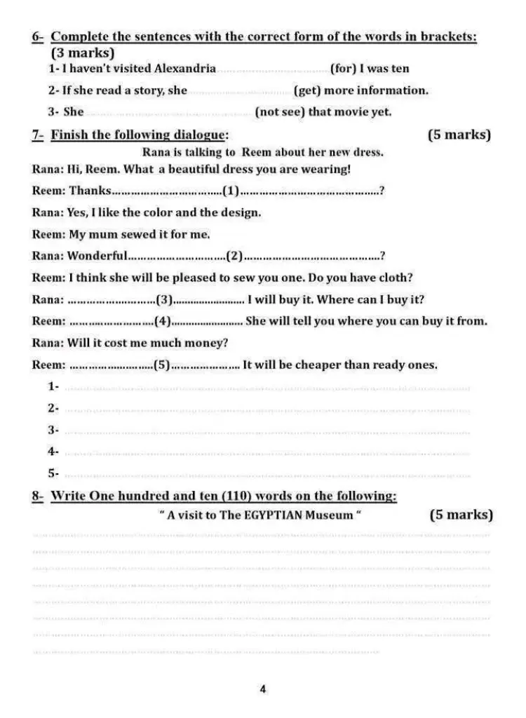 ورقة أسئلة امتحان إنجليزي تالتة إعدادي الترم الأول 2026 الإسماعيلية