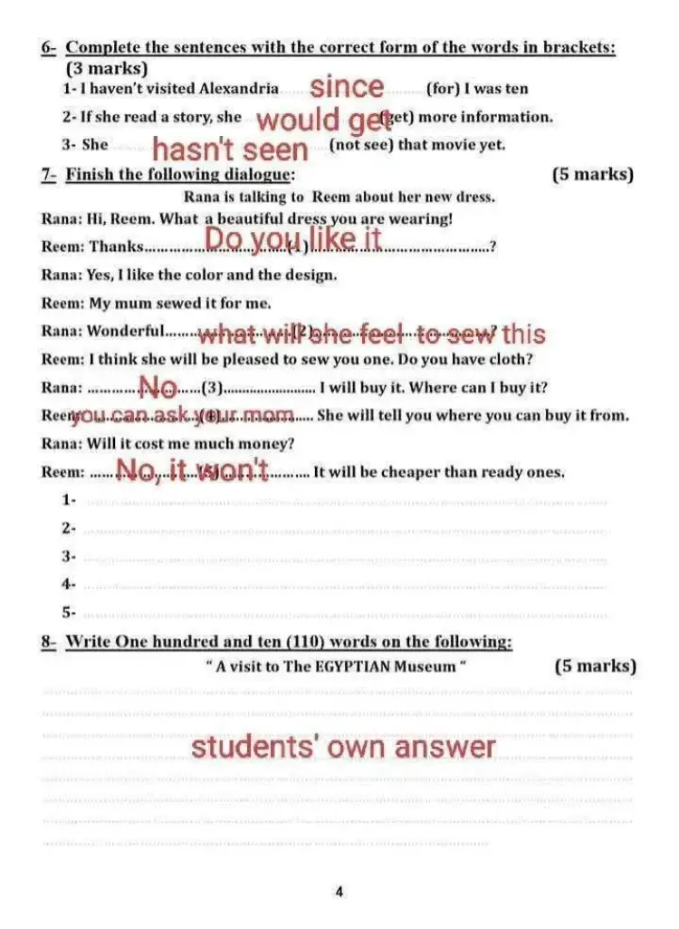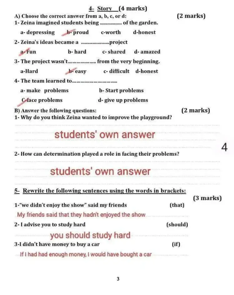 يستيطع طلاب الشهادة الإعدادية تقدير الدرجة التي سيتم الحصول عليها من خلال المراجعة التي نتيحها لك، والتوصل إلى نموذج الإجابة.