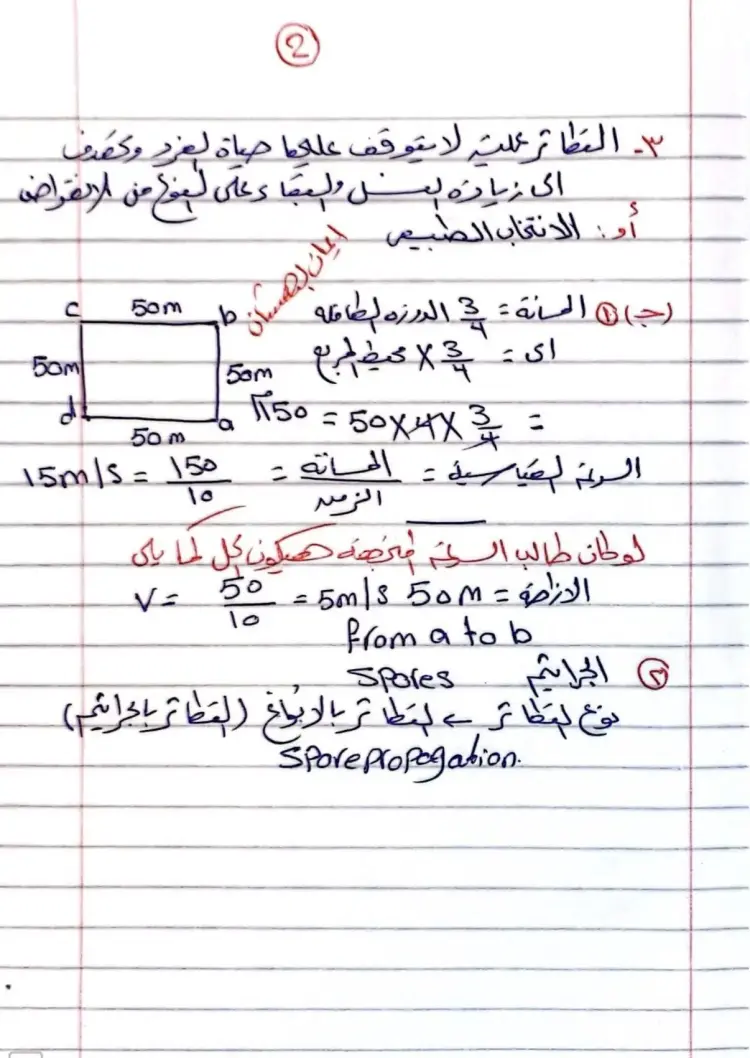 حسابات الزمن: زمن وصول الطالب الأول = 1000 ÷ 10 = 100 ثانية. زمن وصول الطالب الثاني = 1000 ÷ 20 = 50 ثانية. الفرق بين الطالبين = 100 - 50 = 50 ثانية.