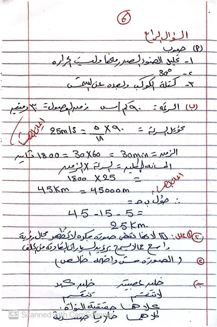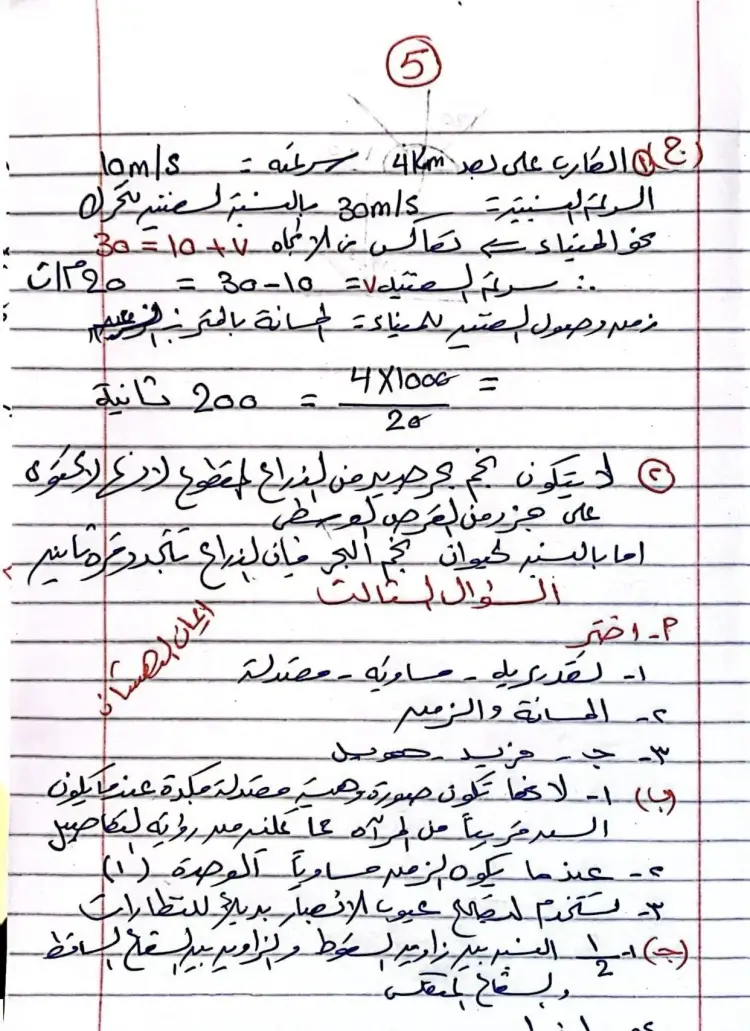 وفيما يخص الحركة، أوضحت الإجابات أنه في حالة قذف جسم رأسيا لأعلى لمسافة 20 مترا ثم عودته لنفس النقطة، فإن المسافة المقطوعة تبلغ 40 مترا، بينما تكون الإزاحة صفرا لعودة الجسم إلى نقطة البداية.