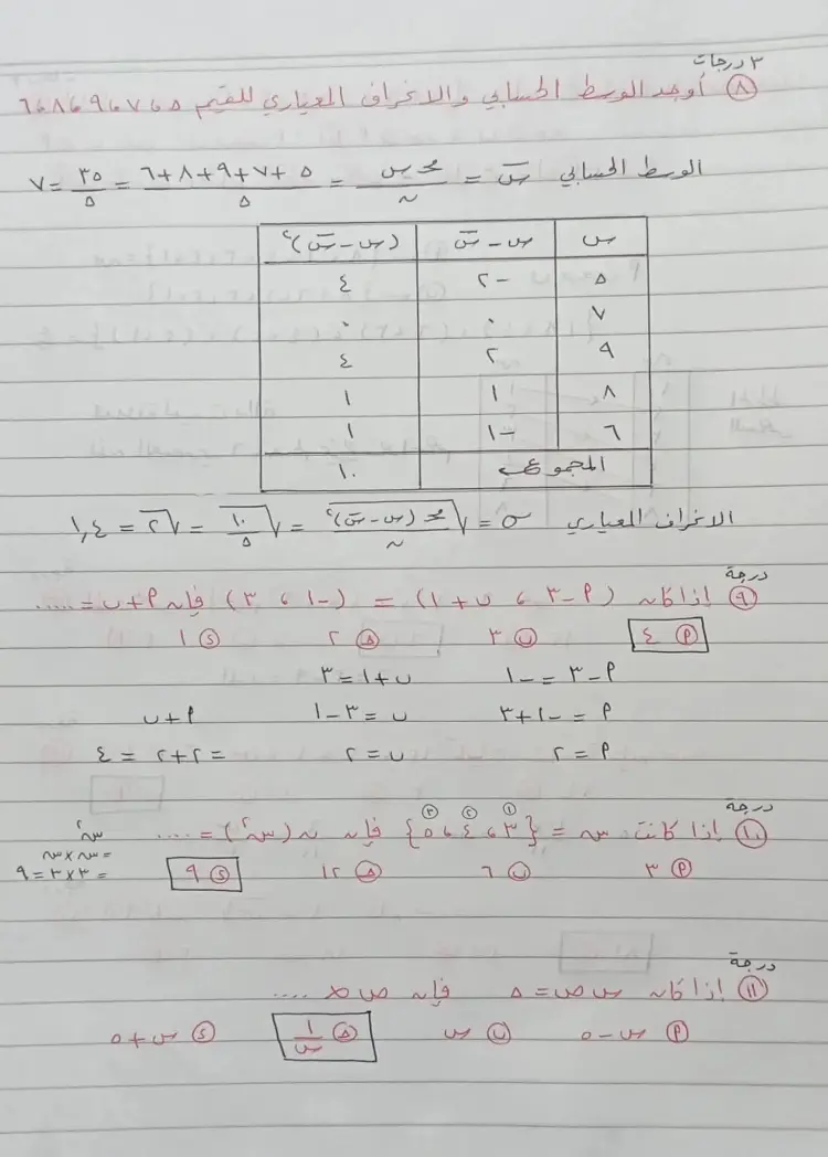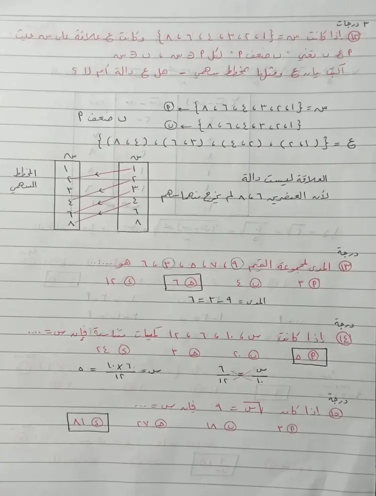 • السؤال (13): المدى لمجموعة القيم {9، 7، 5، 6، 3\} هو 6.
