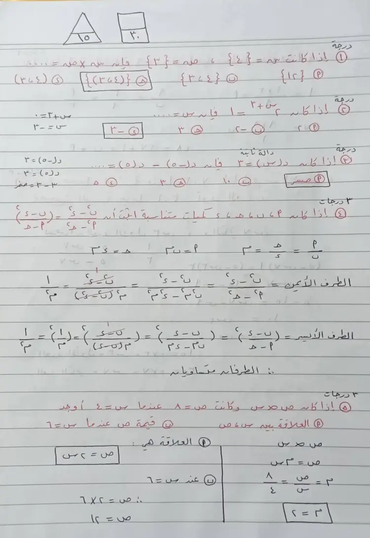 • السؤال (14): إذا كانت (س، 10، 6، 12) كميات متناسبة فإن س = 5.