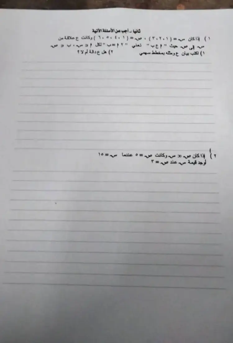 المجموعات: العلاقة $R$ من $X$ إلى $Y$ حيث $a+b=7$ ليست دالة لأن العنصر (1) لم يظهر كمسقط أول.