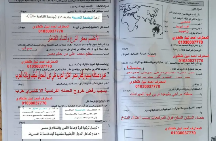 غطت ورقة الأسئلة الجوانب الجغرافية للقارات وأبرز المحطات التاريخية لمصر الحديثة، ويحرص موقع شبابيك على تقديم الإجابات النموذجية لضمان دقة المراجعة ومساعدة الطلاب في تقدير درجاتهم.