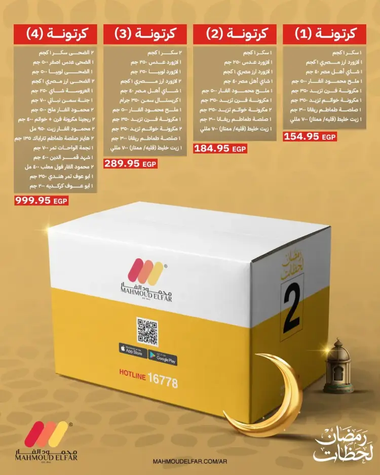 سعر كرتونة رمضان 2026 من محمود الفار ماركت تبدأ من 155 جنيه