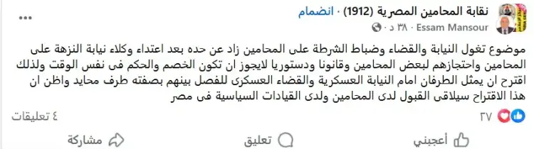 وارتفعت الأصوات المطالبة بضرورة تدخل جهات سيادية أو اللجوء للقضاء العسكري كطرف محايد للفصل في مثل هذه الأزمات التي تتكرر بين الطرفين، لضمان عدم انحياز جهة التحقيق لنفسها في القضايا التي تمس أعضاءها.