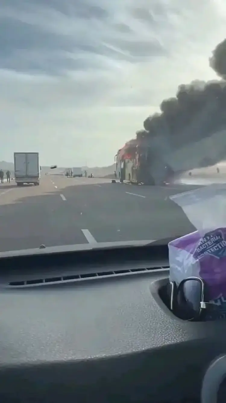 وأكدت الجهات المعنية أن فرق الإطفاء نجحت في السيطرة على النيران ومنع امتدادها إلى الطريق أو المركبات المارة، فيما جرى التأكد من سلامة جميع الركاب، الذين تم نقلهم إلى مكان آمن بعيدًا عن موقع الحادث.