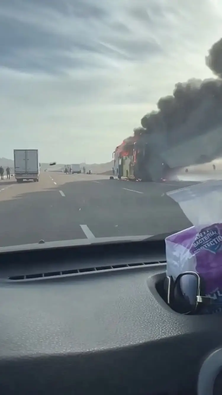 حريق أتوبيس على طريق شرم الشيخ.. تفاصيل الحادث بالصور