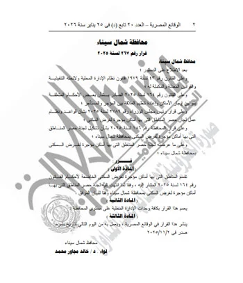 أصدر محافظ شمال سيناء، بالتنسيق مع وزارة الإسكان، قرارا عاجلا لتصنيف الأحياء والمدن التابعة للمحافظة جغرافيا، وذلك تفعيلا لمواد القانون رقم 164 لسنة 2025 بشأن تنظيم العلاقة بين المالك والمستأجر، حيث يهدف القرار إلى تحديد القيمة الإيجارية العادلة وفقاً للموقع الجغرافي والخدمات المتاحة لكل منطقة.