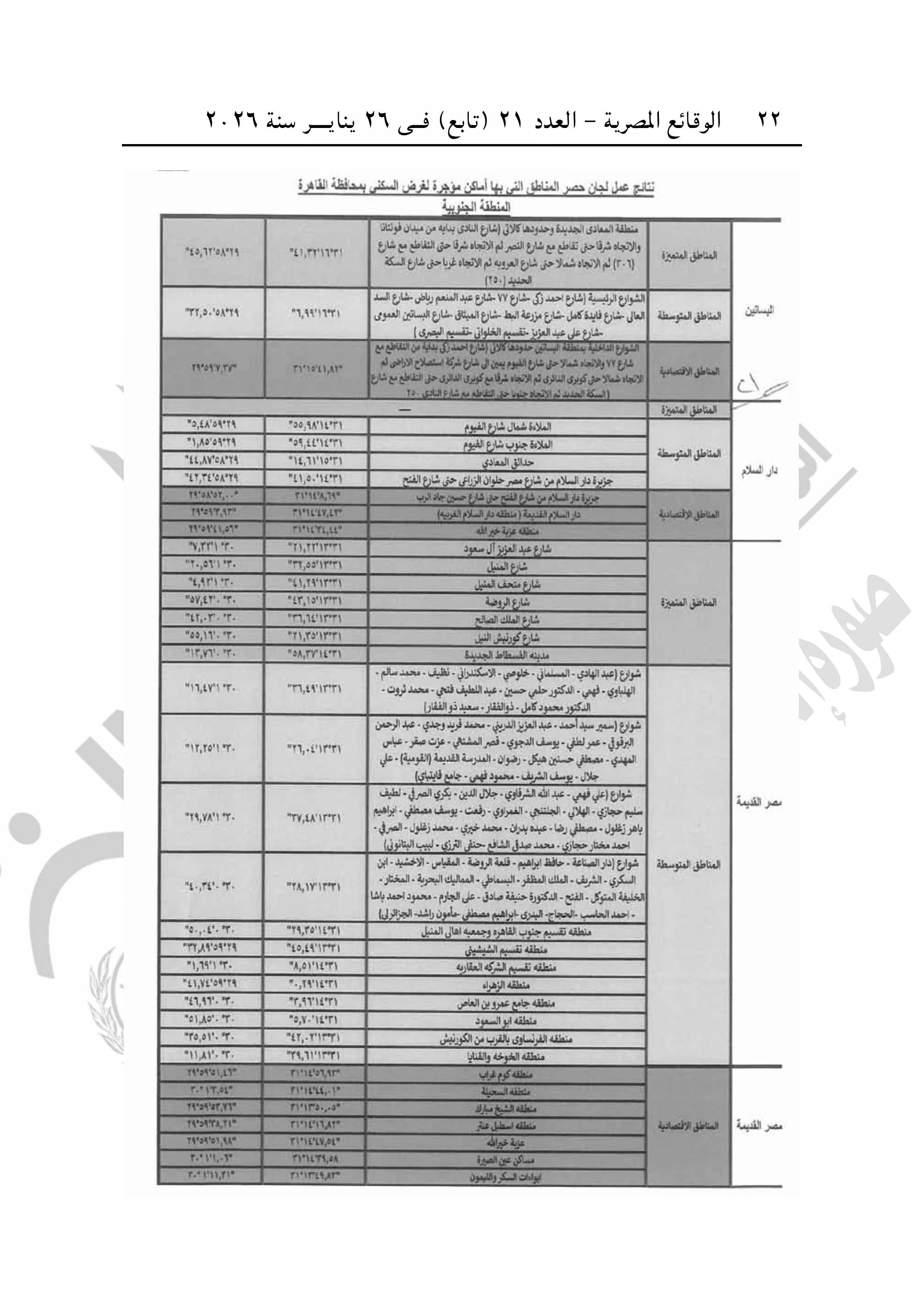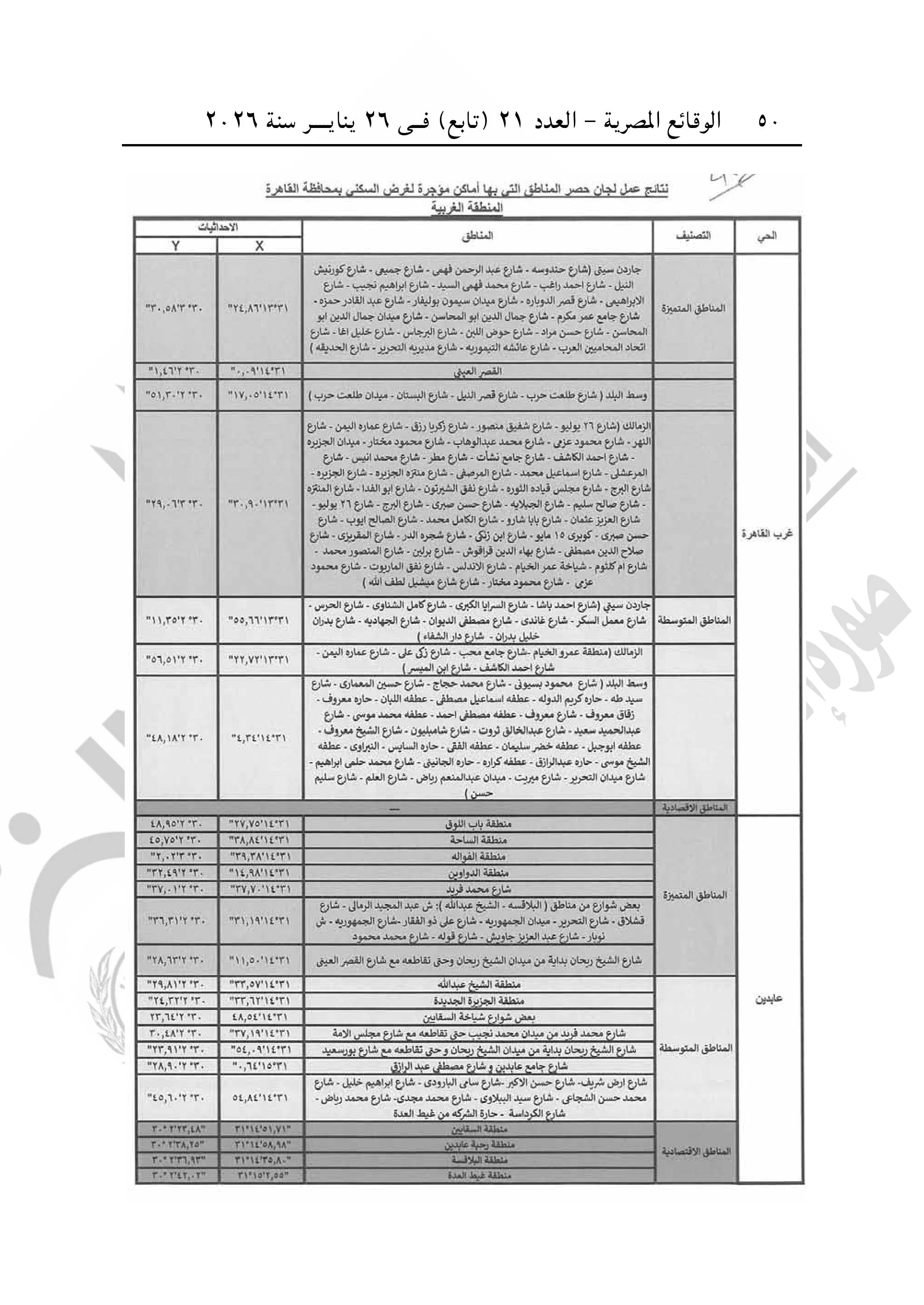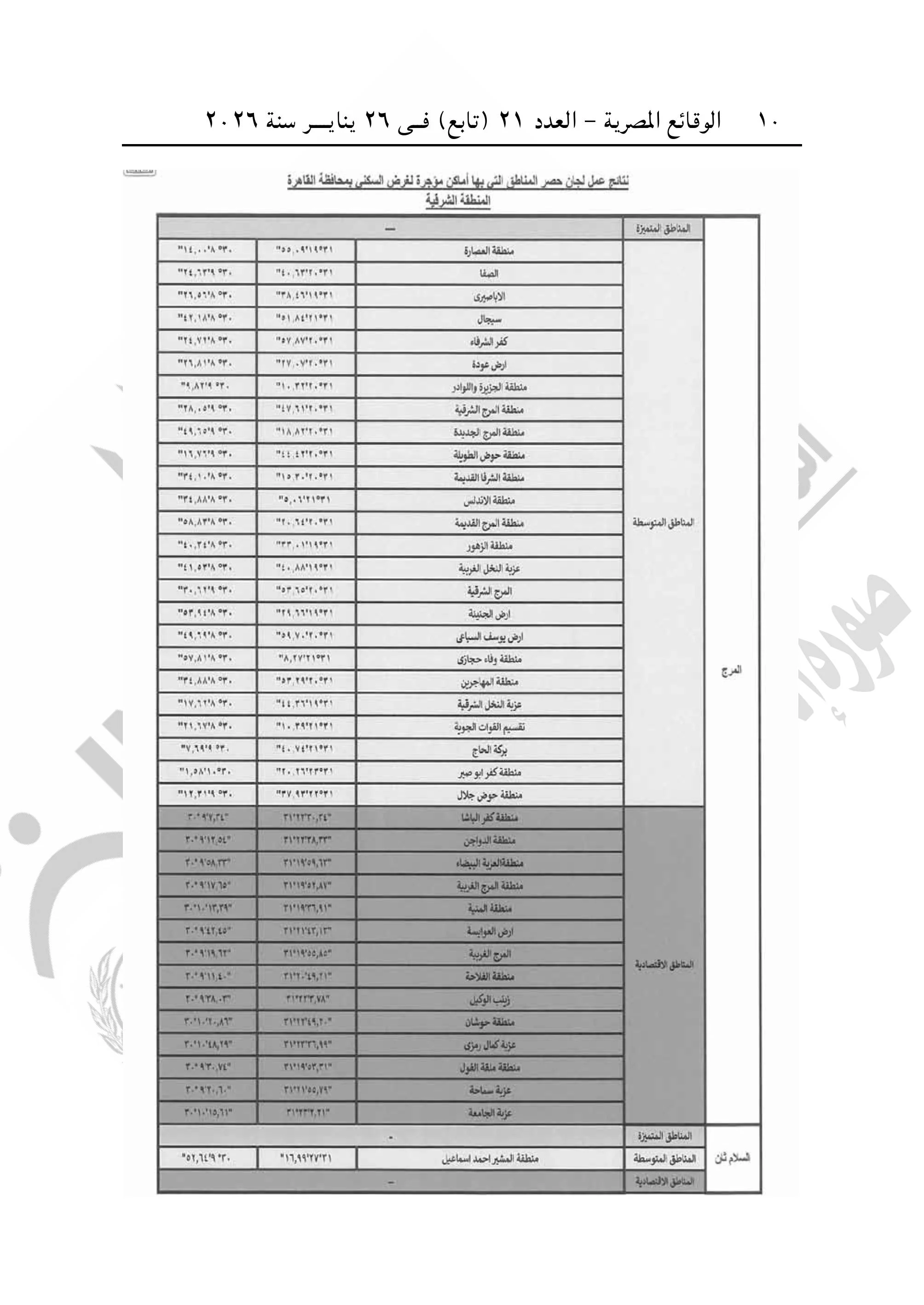 و تضمن القرار تقسيما جغرافيا شاملا للمناطق السكنية بالقاهرة، يهدف إلى تحديد الأوزان النسبية لكل حي بما يضمن توازنا جديدا في القيمة الإيجارية.