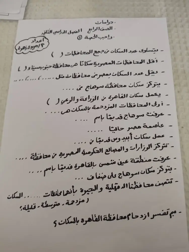 يتساوى عدد السكان في جميع محافظات مصر (خطأ).