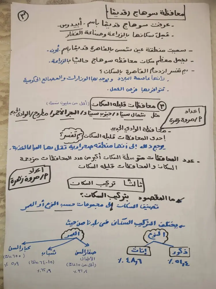 محافظة سوهاج: من المحافظات متوسطة السكان، ويتركز معظم سكانها في القرى على ضفاف نهر النيل، ويعمل معظمهم بالزراعة، بينما يعيش القليل منهم في المدن.